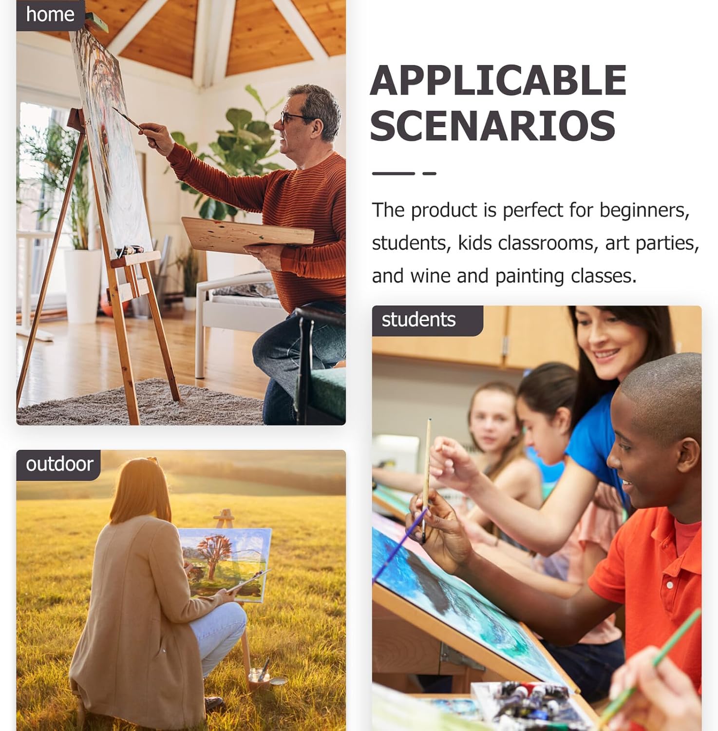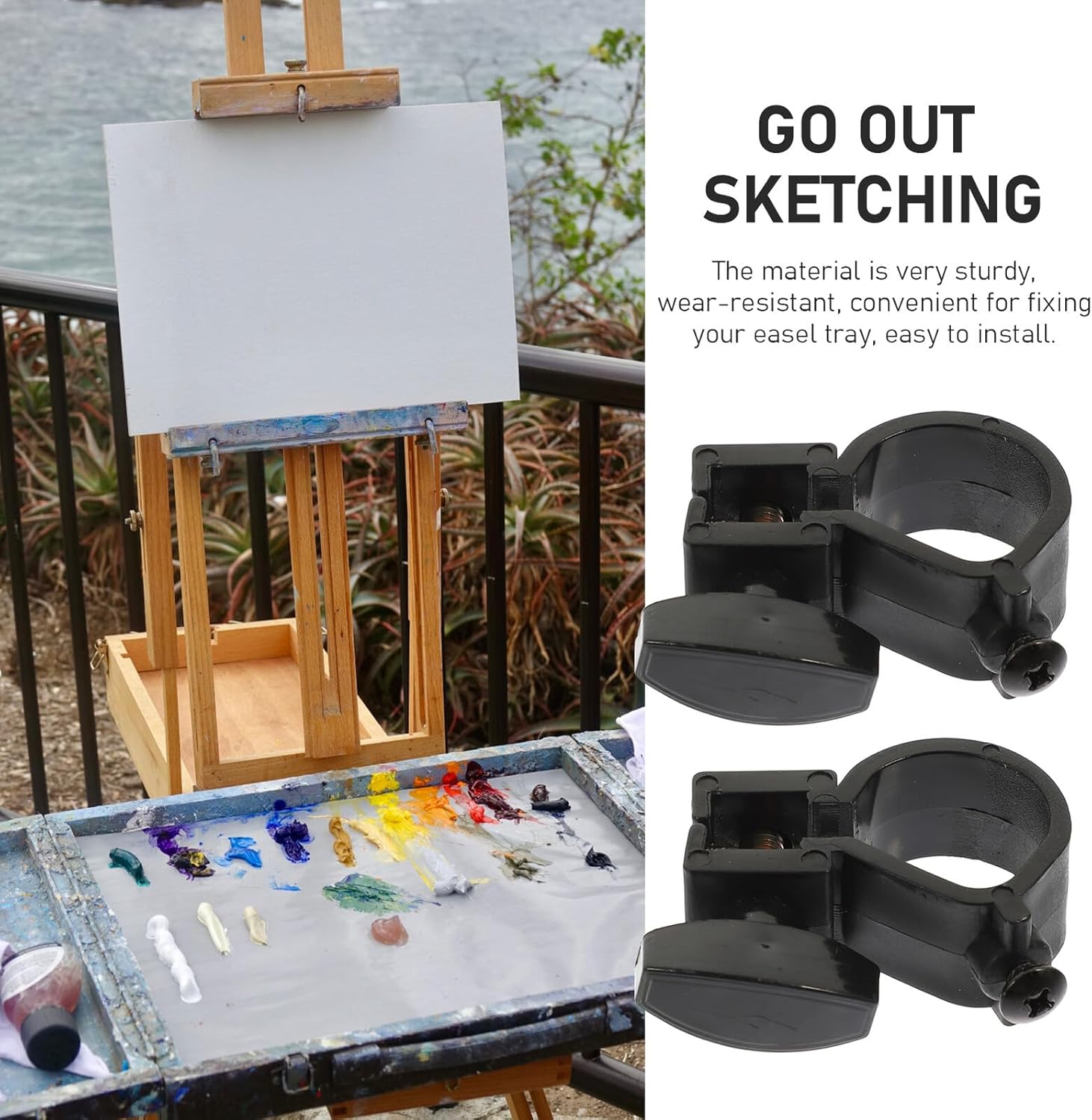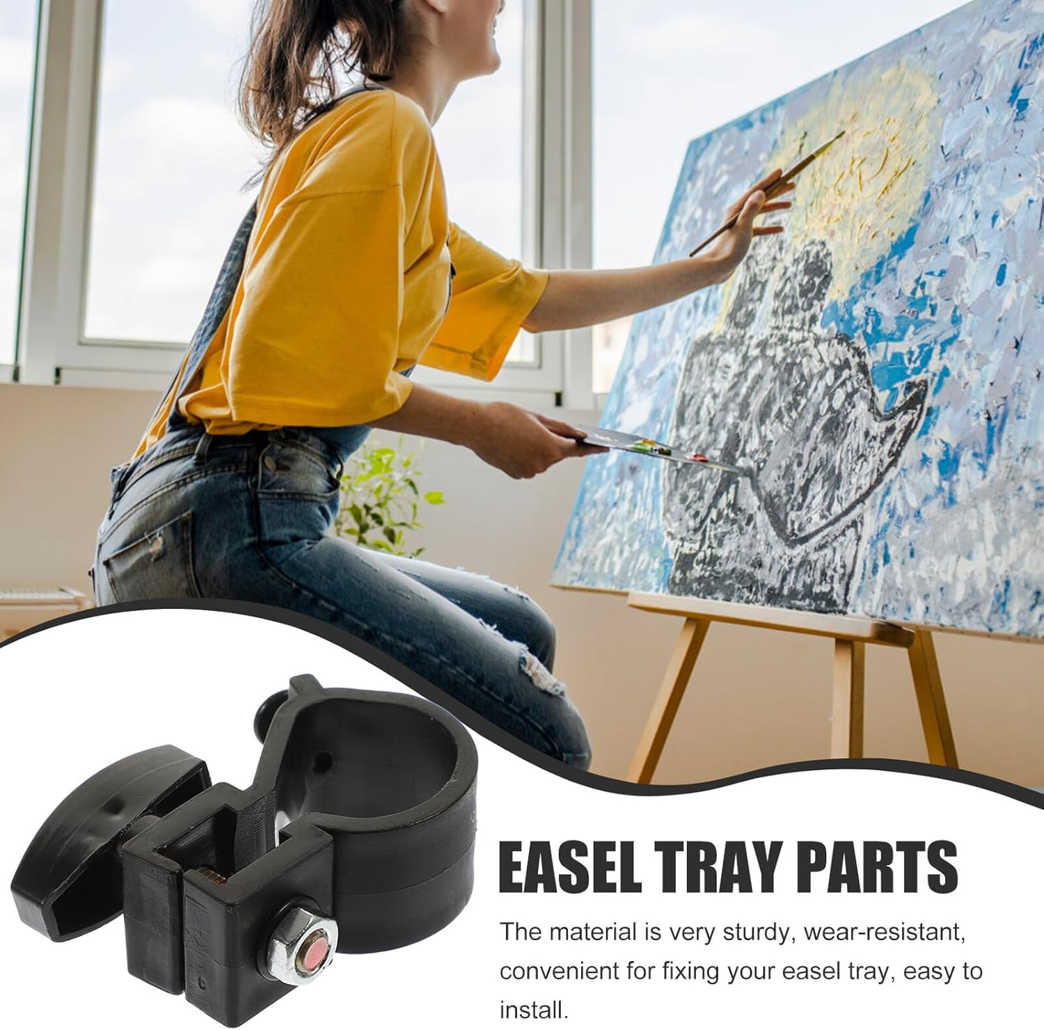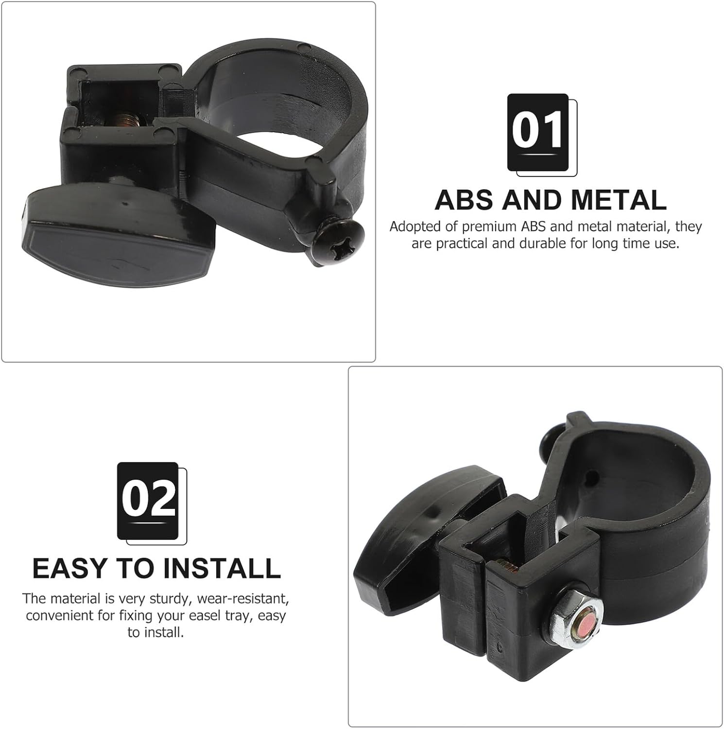 Parti del supporto del cavalletto staccabili: il prodotto è perfetto per principianti, studenti, aule per , feste d'arte e corsi di vino e pittura, accessorio per vassoio del cavalletto Parti del vassoio del cavalletto riutilizzabili: materiale in metallo e abs di alta qualità e lavorazione artigianale, robusto e durevole a lungo, parti robuste del supporto del cavalletto Accessori professionali per cavalletti: con il design creativo della struttura, possono essere facilmente regolabili e staccabili, fibbie per vassoi per cavalletti Parti del vassoio del cavalletto staccabili: la meravigliosa lavorazione del nostro prodotto garantisce dettagli delicati e parti del vassoio del cavalletto sostituibili Fibbie per vassoi compatti per cavalletti: la vite di fissaggio è dotata di maniglia per un'installazione facile e veloce, parti professionali per vassoi per cavalletti
