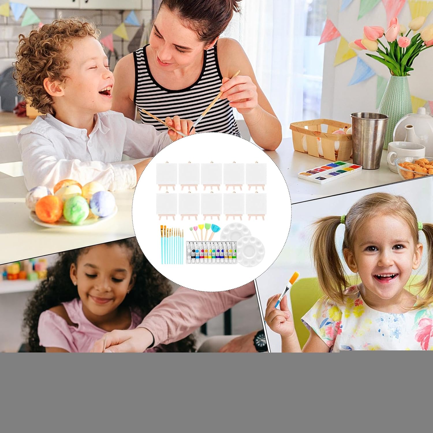 Pittura Sicura e Colorata: Colori vivaci in vernici acriliche lavabili con formula sicura per l'infanzia, permettono pulizia rapida con acqua per esplorazione creativa senza preoccupazioni Espressione Artistica Precoce: Sviluppa capacità motorie fini e incoraggia la creatività nei bambini da 3 anni in su con attività di apprendimento divertenti, ideale per esplorazioni artistiche e sviluppo delle abilità pratiche. Regalo Emozionante: Vivete esperienze artistiche creando decorazioni murali uniche, rafforzando i legami familiari con questo set completo che diventa un regalo creativo e personale Compagno Artistico in Viaggio: Set tela e colori con design compatto e portatile, include custodia per trasporto organizzato e praticità all'aperto, ideale per sessioni creative ovunque durante viaggi o escursioni Set versatile: Dotato di 10 mini, cavalletto in legno e componenti necessari, questo kit pittorico completo sostiene il tuo percorso creativo con praticità