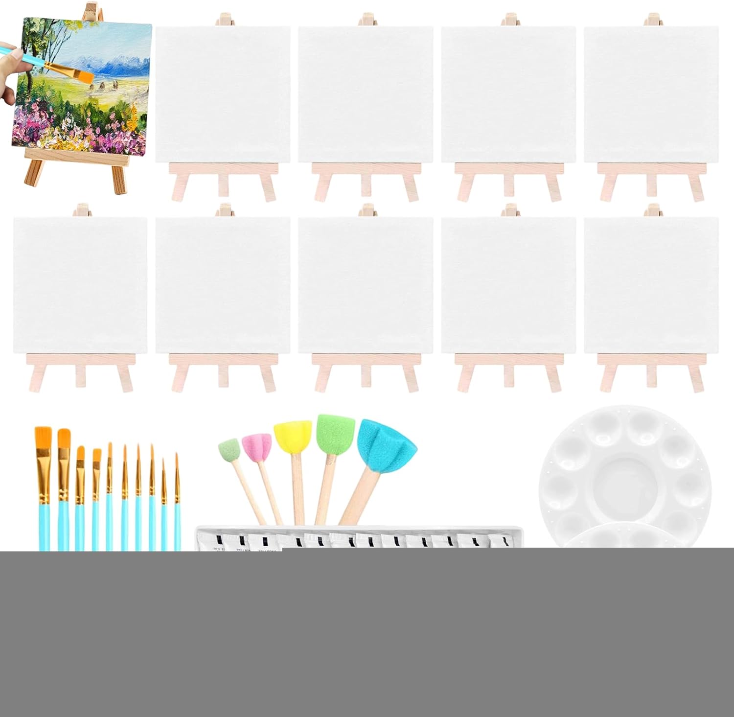Pulizia Semplice: Godi colori intensi con vernici acriliche lavabili progettate con formula sicura per bambini, consentono pulizia a base d'acqua senza sforzo durante il gioco artistico Apprendimento Creativo: Set pittura su tela che incoraggia creatività ed espressione immaginativa, migliorando le capacità motorie con attività didattiche divertenti adatte a età 3+, favorendo una crescita artistica naturale. Decorazione Ispirazionale: Set creativo per progetti artistici e decorazioni murali, promuove momenti in famiglia con attività manuali e si rivela un regalo emozionante per appassionati di fai da te e arte domestica Kit Creativo Portatile: Grazie al design compatto e alla custodia inclusa, è per viaggi, consentendo espressione artistica senza interruzioni durante tutte le avventure creative Pacchetto creativo totale: Include 10 mini e cavalletto in legno per espressione artistica immediata, ideale per esplorare tecniche pittoriche diverse