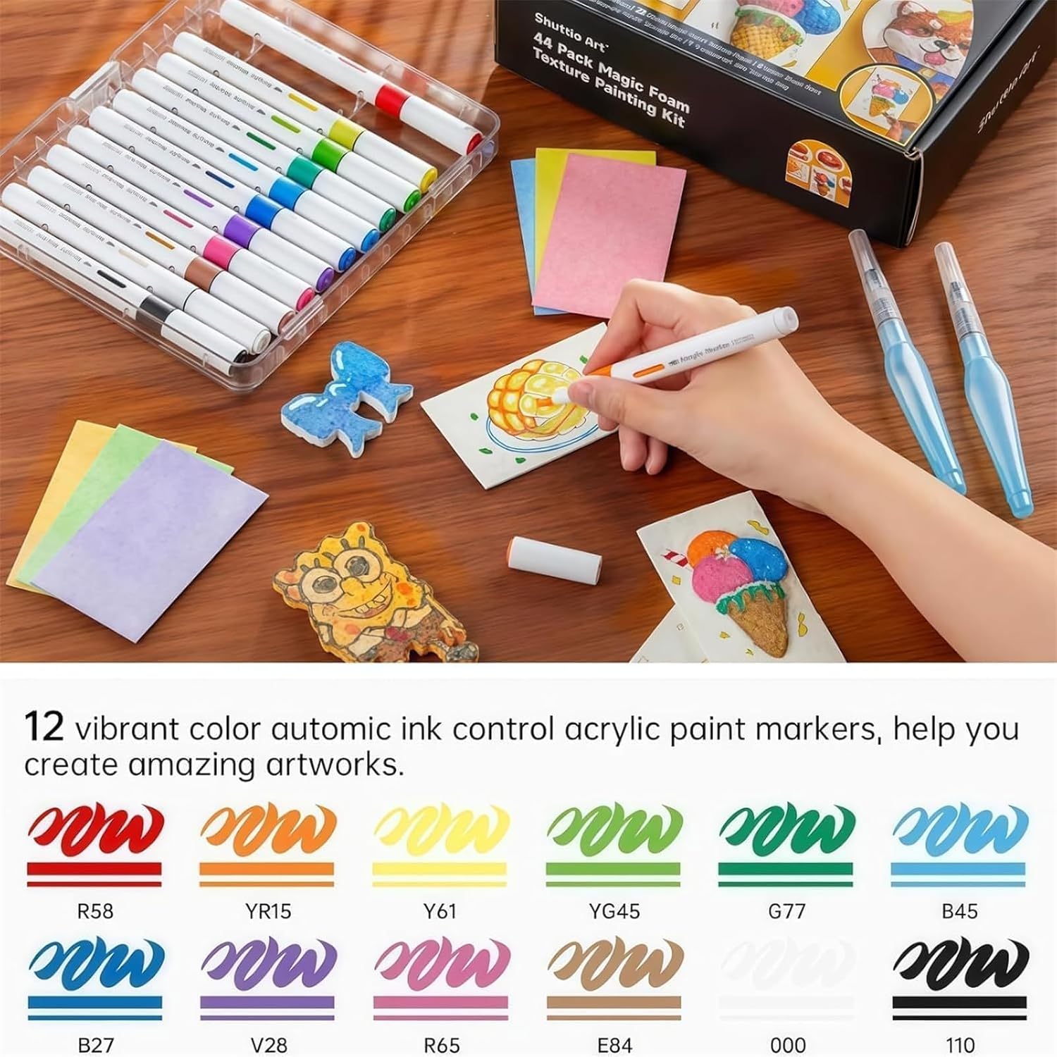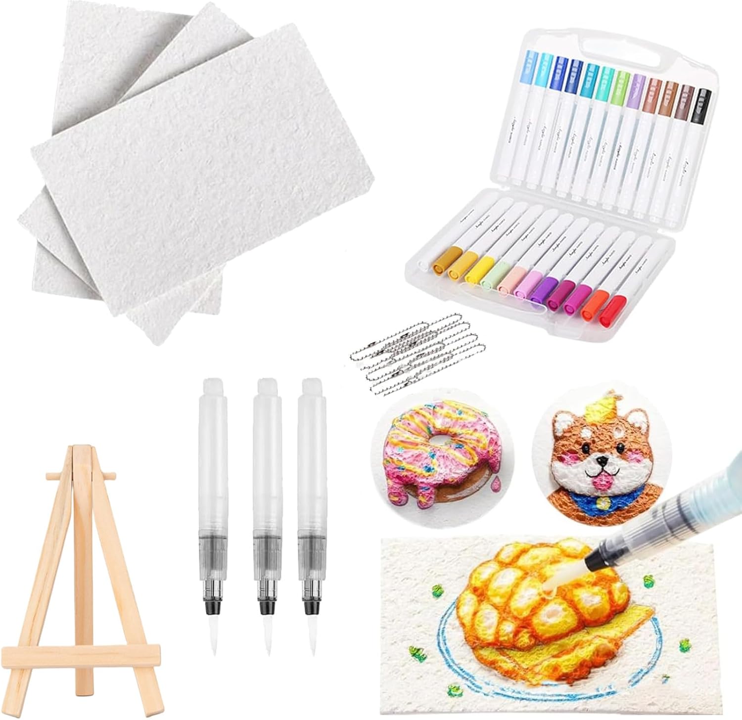 Questo kit fai da te per dipingere con la schiuma magica utilizza una speciale carta in schiuma che si espande rapidamente quando esposta allacqua, trasformando facilmente disegni piatti in effetti di rilievo 3D. È semplice e divertente da usare. Basta spennellare il dipinto con acqua e, in 30 secondi, vedrai il magico effetto 3D. Non sono necessari strumenti complicati, permettendo a bambini e adulti di provare la gioia della creazione istantanea. Perfetto per biglietti dauguri, decorazioni fatte a mano e regali creativi, è un ottimo modo per i bambini di tutte le età di scatenare la loro immaginazione, creando arte mentre si rilassano e senza stress, offrendo infinite possibilità creative. Compatibile con una varietà di strumenti di pittura, inclusi pennarelli, pastelli e acquerelli, può anche essere utilizzato con diversi supporti come la pittura acrilica per soddisfare diverse esigenze creative. Il kit include 10 fogli di carta in schiuma, 12 pennarelli, 3 penne acquerellabili e 3 adesivi di design, che consentono di iniziare a creare arte 3D fin da subito.
