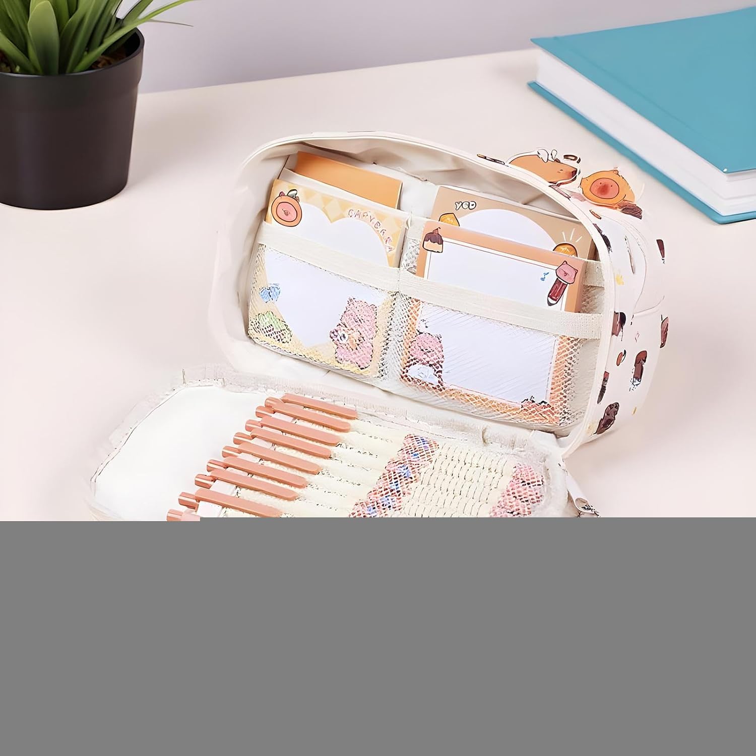 Accesso Ottimizzato: Progetto con apertura ampia per stoccaggio efficiente e inserimento agevole, permette di raggiungere gli oggetti in modo celere mantenendo layout funzionale Organizzatore Multiuso: Soluzione pratica e accessorio moda raffinato, questo astuccio capibara offre un design elegante, per organizzare oggetti durante viaggi o routine giornaliere mantenendo l'ordine essenziale Soluzione Portatile: Manico superiore e funzionalità pratica lo rendono per scrivanie, zaini e altri ambienti, offrendo versatilità multiuso mantenendo praticità e facilità d'uso Tessuto Flessibile Innovativo: Enfasi su materiale anti-graffio e morbido al , assicura flessibilità e funzionalità duratura senza compromettere lo stile Layout accessibile migliorato: Equipaggiato con tasche a rete, porte penne e più livelli, questo pratico organizzatore assicura che ogni articolo abbia la sua collocazione dedicata per una massima convenienza nell'utilizzo quotidiano