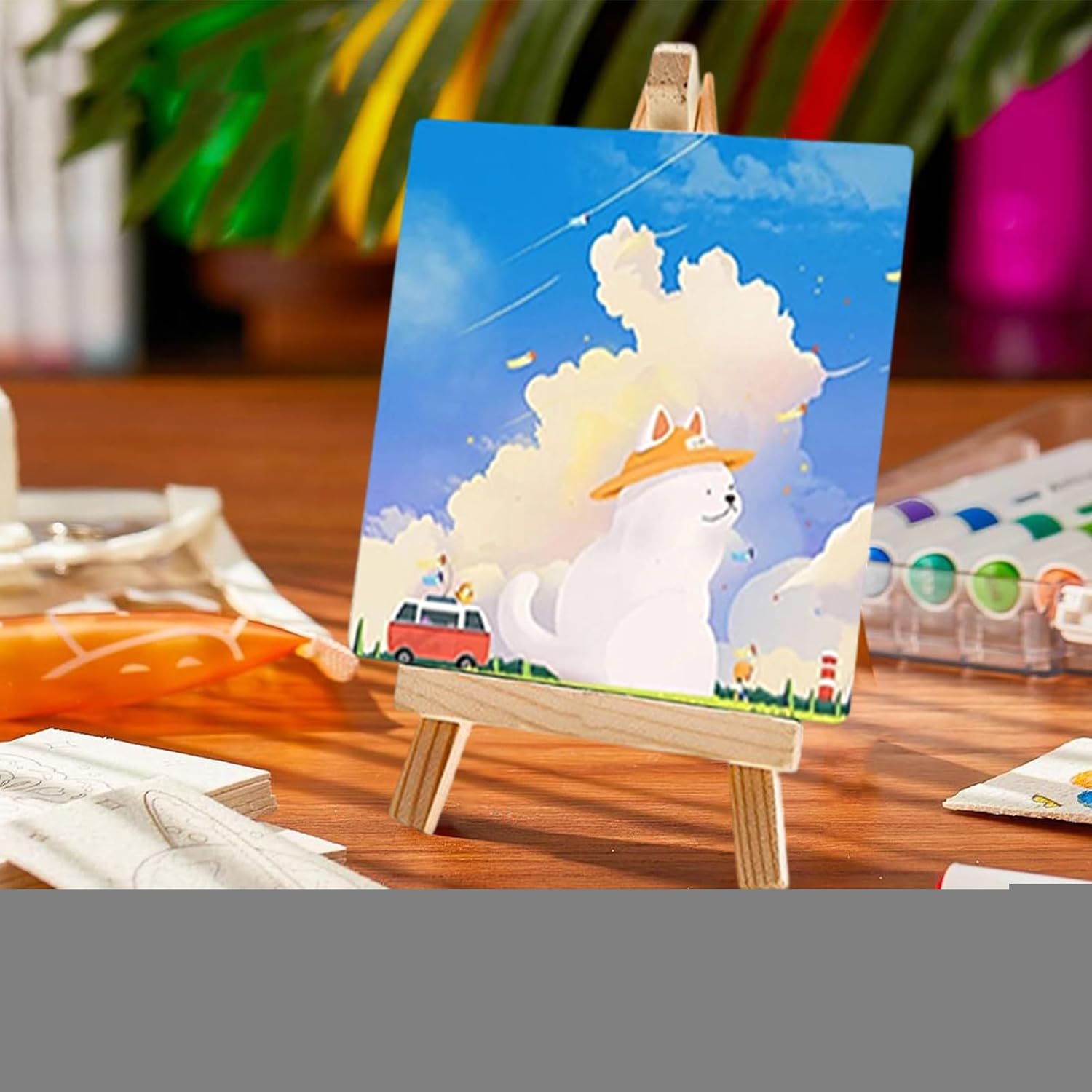 Pulizia Semplice: Godi colori intensi con vernici acriliche lavabili progettate con formula sicura per bambini, consentono pulizia a base d'acqua senza sforzo durante il gioco artistico Espressione Artistica Precoce: Sviluppa capacità motorie fini e incoraggia la creatività nei bambini da 3 anni in su con attività di apprendimento divertenti, ideale per esplorazioni artistiche e sviluppo delle abilità pratiche. Regalo Emozionante: Vivete esperienze artistiche creando decorazioni murali uniche, rafforzando i legami familiari con questo set completo che diventa un regalo creativo e personale Compagno Artistico in Viaggio: Set tela e colori con design compatto e portatile, include custodia per trasporto organizzato e praticità all'aperto, ideale per sessioni creative ovunque durante viaggi o escursioni Soluzione creativa integrata: Con 10 mini, cavalletto in legno robusto e fornitura completa, il kit artistico pronto ispira creatività e offre comodità immediata