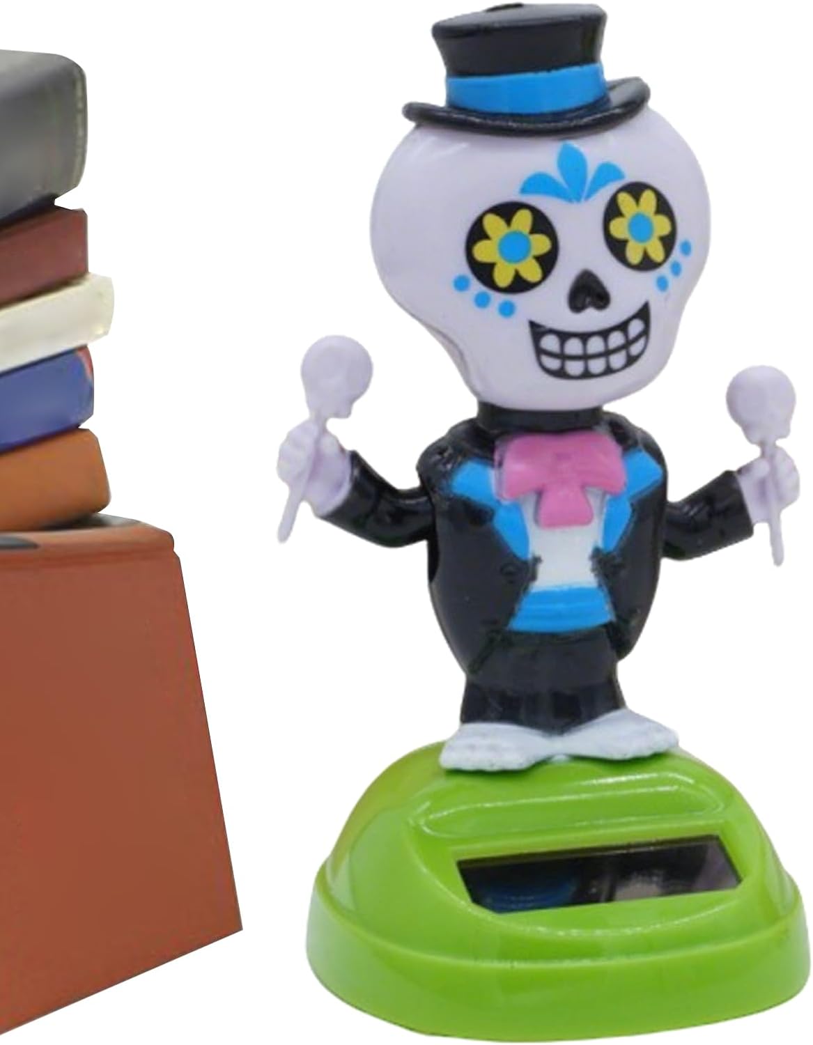 Powered by Sunlight for Continuous Movement: This solar figurine requires no batteries—just place it under direct sunlight and watch it dance all day. A fun and eco-friendly way to decorate desks, shelves, or with nonstop spooky motion and playful energy Creepy-Cute Skeleton Design for Halloween Decor: The Bubble Head skeleton shakes and grooves in a fun, eerie way that’s perfect for Halloween parties, haunted house setups, or spooky office desk displays that surprise and delight guests and coworkers Compact 2.28x4.33 Inches Inch Size for Small Display Spaces: Designed to fit on desks, nightstands, shelves, windowsills, or party tables without taking up too much room—this figurine adds a fun Halloween vibe even in tight spaces or crowded party setups Sturdy Lightweight for Everyday Use: Crafted from quality that resists breakage and daily wear, making it ideal for year-round spooky fans or for storage and reuse during multiple Halloween seasons without losing charm Perfect for Parties and Work Desk Decor: Use it as a quirky Halloween gift, party favor, or conversation piece at the office. It’s a lighthearted way to bring smiles to coworkers, friends, or family with a solar-powered touch of humor