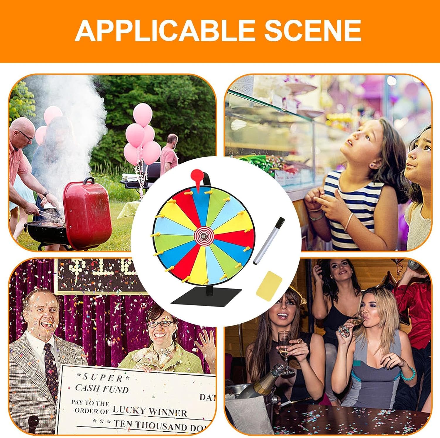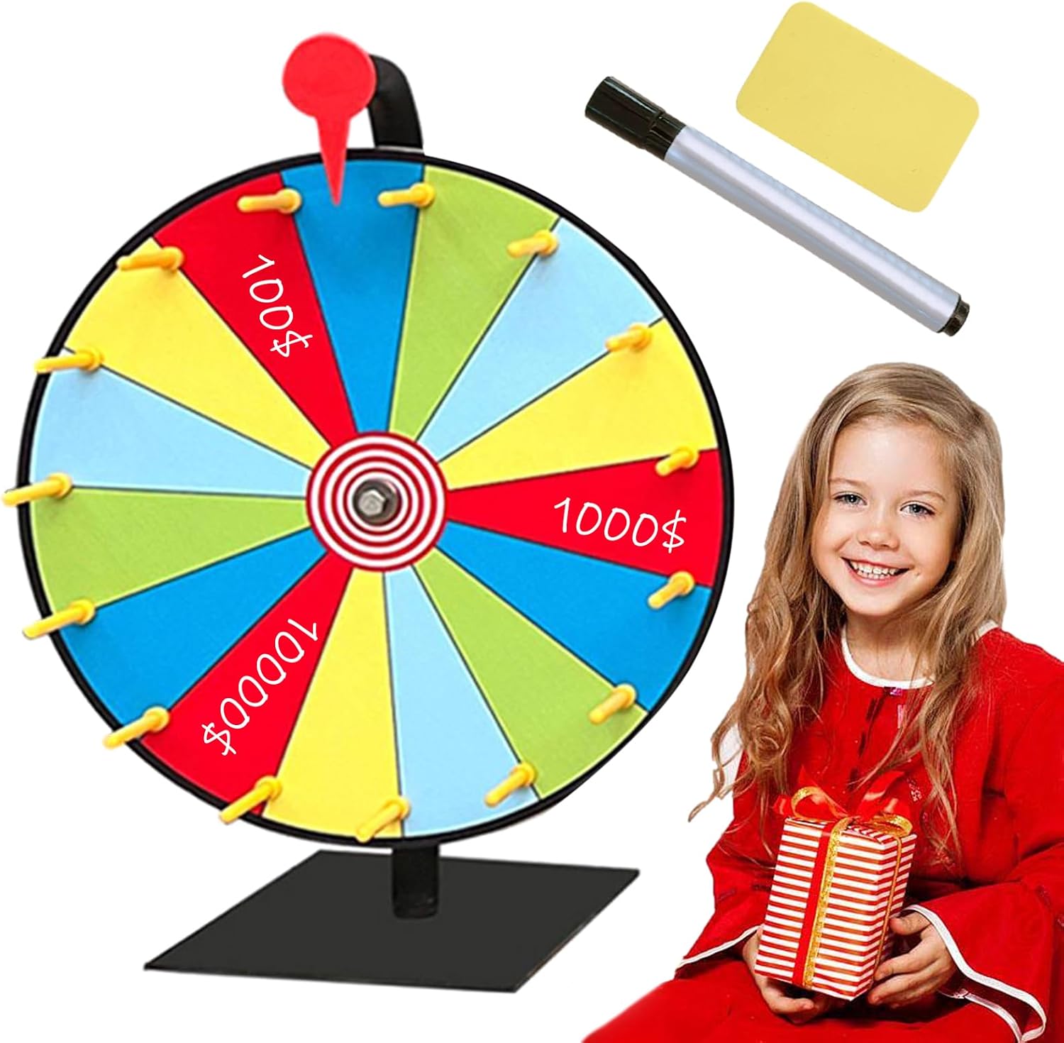 Ideal for Teachers Organizers and Vendors: A versatile engagement tool that works in classrooms offices stores conventions and anywhere crowd interaction or random selection is helpful Eye-Catching Visuals for Audience Attention: Bright colors and motion naturally attract people’s attention making it a fun centerpiece for engaging customers or students Easy to Write and Erase for Reuse: The writable allows you to label sections using dry-erase markers for quick prize changes or theme customization across different events or Great for Games and Education: Use for marketing giveaways fortune games student rewards or team-building exercises to draw crowds and boost participation Tabletop Design Ideal for Compact Spaces: Perfect for setting up on tables counters or booths where space is limited but interactive engagement is needed such as fairs or promo displays