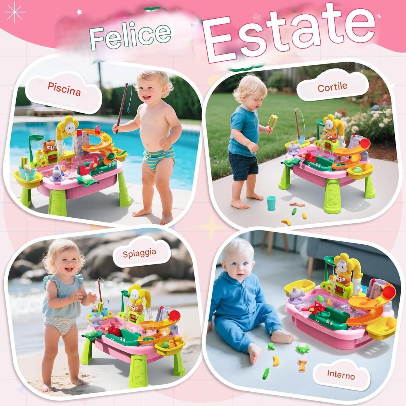 Design Ergonomico: Rubinetto a forma di girasole con simulatore di pioggia stimola l'esplorazione sensoriale, promuovendo naturalmente la curiosità e l'apprendimento del risparmio idrico attraverso attività interattive che rendono divertente la conservazione delle risorse. Immaginazione: Sviluppa l'immaginazione, affina le percezioni sensoriali e migliora le capacità motorie fini durante attività interattive con la tavola d'acqua per bambini Stazione Scientifica: Coinvolge i bambini in giochi scientifici pratici con apprendimento aperto, potenziando lo sviluppo del pensiero logico grazie ad attività ispirate alla fisica sul tavolo acqua. Scoperta Creativa: Tavolo acquatico per bambini per giochi educativi all'aperto, funge da compagno creativo per sabbiera migliorando l'interazione genitore-figlio in giardino o spiaggia, ispirando naturalmente l'esplorazione immaginativa Niente Schermi: Promuove apprendimento pratico e sviluppo sensoriale senza dispositivi elettronici, con impostazione ergonomica che incoraggia la coordinazione e la risoluzione creativa di problemi attraverso esperienze tattili multistrato