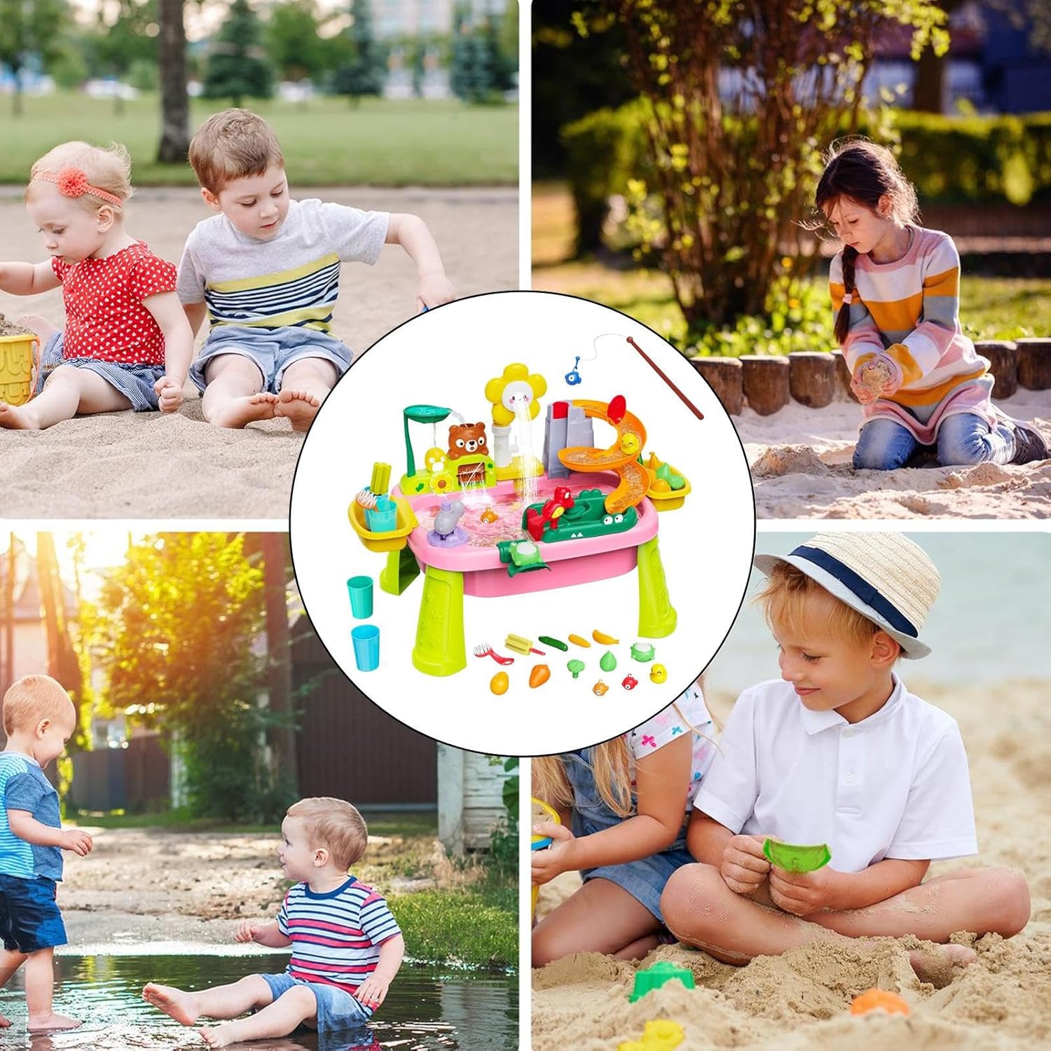 Esperienza Interattiva: Oltre 20 per giochi di ruolo come cucina e , ideale per sviluppo sensoriale. Migliora abilità motorie fini incoraggiando creatività e cooperazione tra bambini durante il gioco. Riduzione Screen Time: Incentiva l'apprendimento pratico con meccanismo a tre altezze regolabili che garantisce comfort ergonomico, sviluppa coordinazione motoria e limita il di utilizzo degli schermi. Occasioni Multiple:Tavolo acqua e sabbia bimbi crea un'estiva area gioco immersiva con doppia modalità, perfetta per piscine domestiche o spiagge. Stimola l'apprendimento interattivo attraverso giochi creativi di costruzione Attività Immaginativa Acqua:Favorisce l'esplorazione sensoriale tramite l'osservazione percorsi galleggianti e interazioni con flussi d'acqua, incoraggiando lo sviluppo logico e il pensiero creativo durante semplici esperimenti di fisica per piccoli apprendisti. Gioco Acqua Girasole: Stimola la curiosità con un tavolo acqua per bambini piccoli, offre modalità pioggia simulata e ciclo acqua creativo, alimentato da pompa a batteria, per coinvolgente gioco a tema girasole