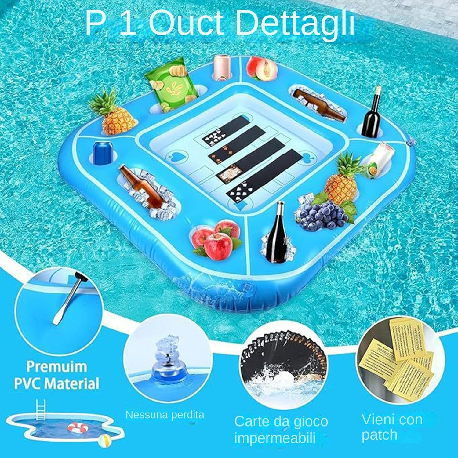 Utilizzo completo: Ottimizza le feste in piscina consentendo di giocare a carte e giochi da tavolo, operando come elemento centrale per attività acquatiche che migliora l'esperienza ricreativa con naturale semplicità Adattabilità multi-scenario: Migliora il relax in acqua con questo tavolo galleggiante, ideale per piscine domestiche e resort, offrendo ampio spazio per bevande e oggetti in ambienti acquatici comuni Pratico e portatile: Progettato per la massima comodità, con una struttura portatile e camera d'aria integrata per un montaggio e smontaggio rapidi, ottimizzando lo spazio di riporo Gioco stabile sull'acqua: Grazie all'equilibrato galleggiamento e alla base texture antiscivolo, garantisce posizionamento sicuro durante intrattenimenti e giochi in piscina Qualità durevole: Progettazione ottimizzata per ambienti esterni unisce struttura stabile, tessuto tecnico anti-degradamento UV e componenti idrorepellenti, garantendo prestazioni affidabili nel anche con utilizzo intensivo in contesti umidi o piovosi