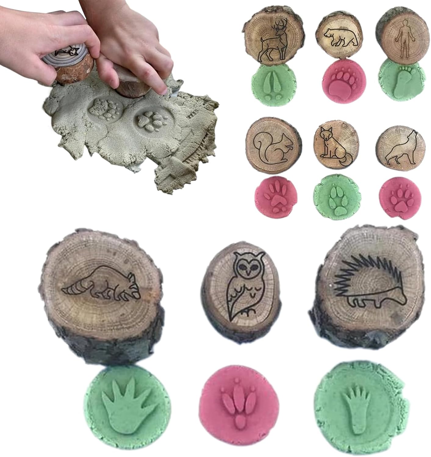 Maniabilità Ottimizzata: Timbri animali con impugnatura ergonomica in legno pregiato, progettati per preservare texture autentiche e creare impronte chiare, migliorando l'esperienza utente in progetti creativi e lavoretti artistici. Apprendimento Ludico: Potenziano motricità fine e pensiero creativo insegnando ai bambini gli animali tramite l'esplorazione delle impronte, con approccio divertente che costruisce conoscenza. Strumento Didattico Versatile: Progettati con disegni studiati per approfondire la cognizione. Il a doppia faccia con impronte e sagome animali si adatta sia al familiare che alle aule scolastiche in diversi ambienti di apprendimento Gioco Creativo Outdoor: Ispira la connessione con la natura tramite strumenti creativi per osservare impronte animali, promuovendo apprendimento esplorativo e meraviglia verso gli ecosistemi, sostenendo la crescita con scoperte giocose. Apprendimento Naturalistico: 9 timbri a tema fauna distintivi promuovono educazione sulla biodiversità, costruiscono conoscenza tassonomica e mostrano rappresentazioni ecosistemiche realistiche