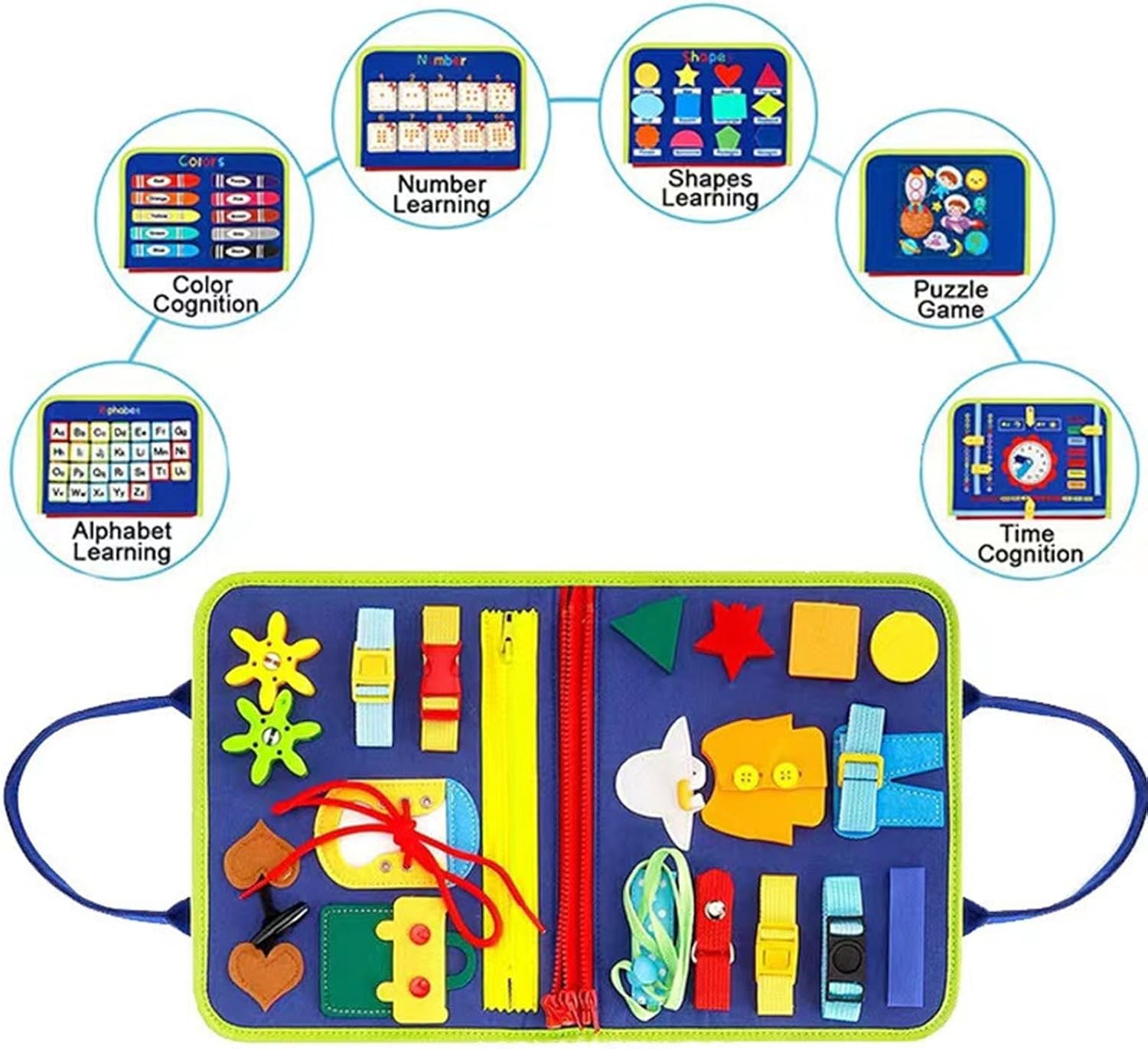 La sicurezza viene prima: puoi rilassarti sapendo che questa tavola di apprendimento è realizzata con cerchi lisci e nessuna bara, assicurando che non causerà alcun danno alla pelle morbida del tuo bambino Migliora le abilità di vita: attraverso attività multi-sensoriali, questa commissione non solo migliora le capacità motorie, ma promuove anche il pensiero creativo e sviluppa abilità di vita pratiche Migliora le capacità cognitive: sblocca il potenziale di tuo figlio con le attività di board di feltro che sviluppano capacità di pensiero critico. Giocattoli educativi perfetti per lo sviluppo cognitivo dei bambini piccoli Costruzione robusta: con forti connettori e materiale eccezionale e morbido, questo consiglio di apprendimento garantisce un'istruzione sicura e coinvolgente. I suoi cerchi fluidi impediscono eventuali alle piccole mani di tuo figlio, fornendo un'esperienza di apprendimento interattiva per ore Viaggio-friendly: Lascia che questa tavola di apprendimento fosse il tuo compagno di istruzione all'aperto, con il suo design portatile che si adatta facilmente alla tua borsa. Mantieni il tuo bambino intrattenuto e imparando ovunque tu vada, rendendo più divertenti ed educativi, rendendo più divertenti ed educativi.