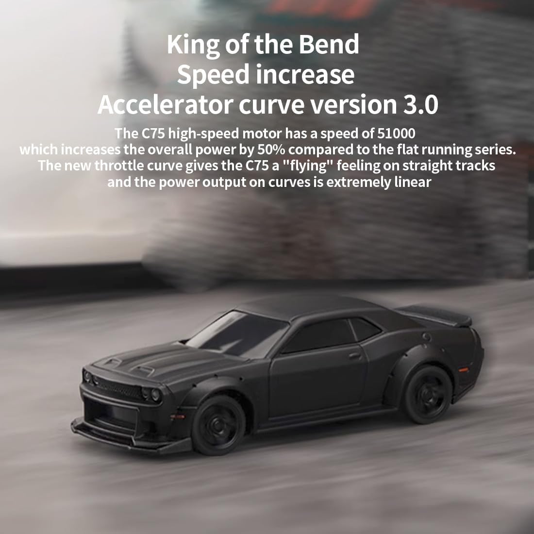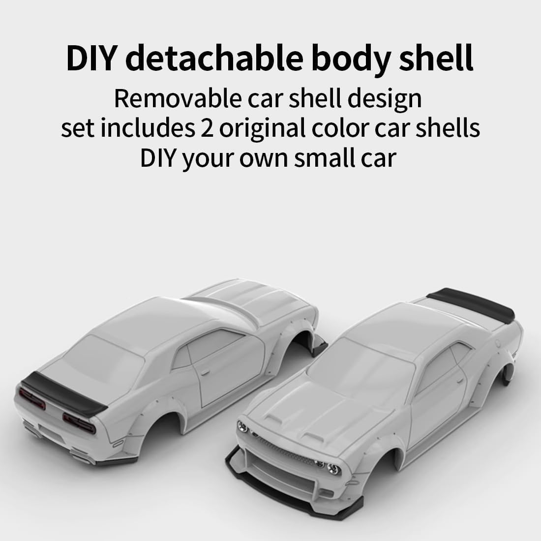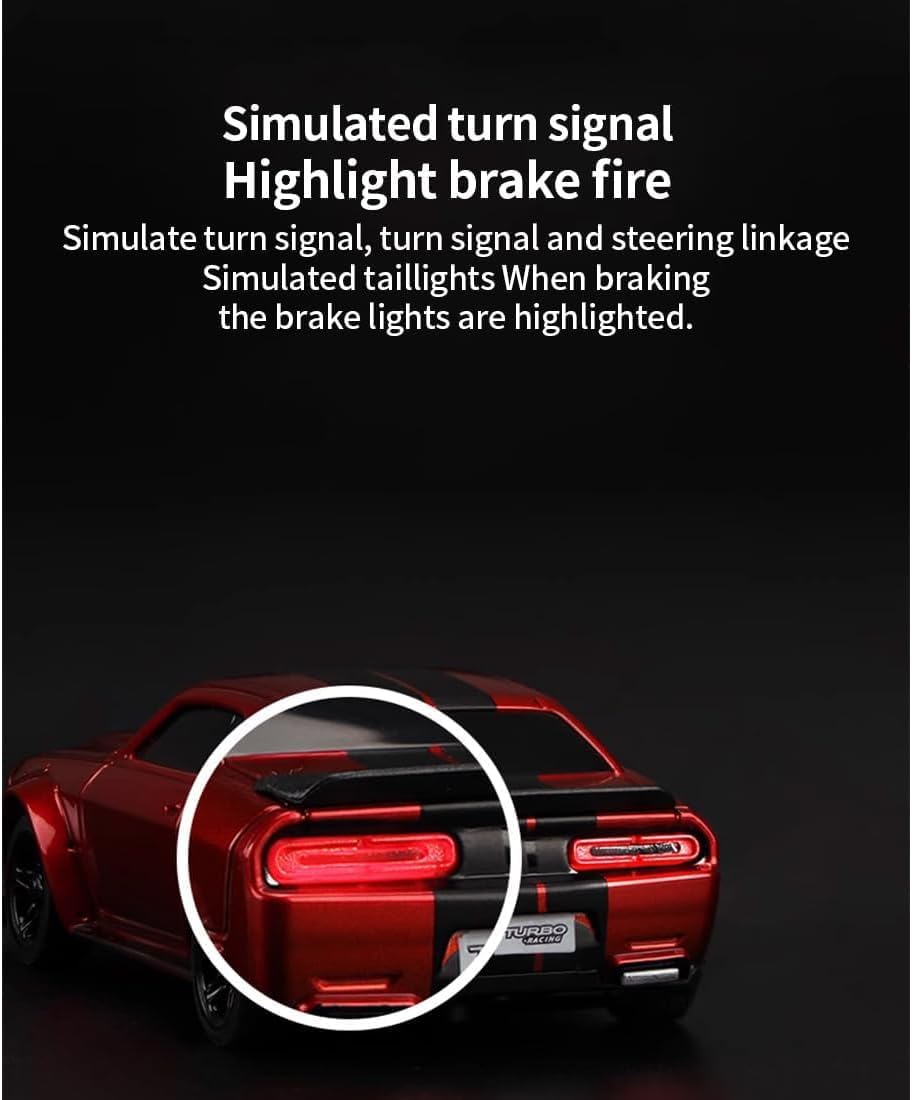 Precision Desktop Drifting Experience: Enjoy realistic high-speed drifting on tabletops or small indoor spaces with the Turbo Racing 1/76 RC Car. Designed for smooth sliding and responsive handling, it offers an engaging experience for RC enthusiasts of all ages Customizable Removable Car Shell: Express your style with a removable car shell that allows for easy painting or switching designs. This feature supports personalization and hands-on creativity to match your preferences Advanced Gyroscopic Stabilization System: The upgraded gyroscope improves balance and control during sharp turns and fast movements. It helps provide more stable performance and smoother drifting especially in tight racing conditions Compact 1/76 Scale with Powerful Performance: Despite its small size the RC car delivers dynamic drifting capabilities. Its ultra-compact design makes it ideal for limited spaces such as desks or tables while offering exciting racing action LED Lighting and Responsive Remote Control: Built-in LED headlights and tail lights add visual appeal during operation. The ergonomic remote provides intuitive and precise control over acceleration steering and movement for better overall handling