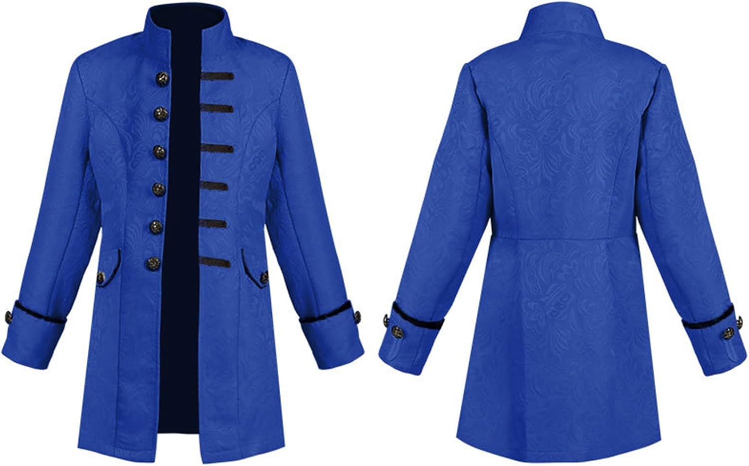 Generico Uomo Steampunk Gotico Medievale Vittoriano Soprabito Cotone Cappotto con Risvolto Maniche Lunghe Costume Trench per Halloween Feste Natale Interessante