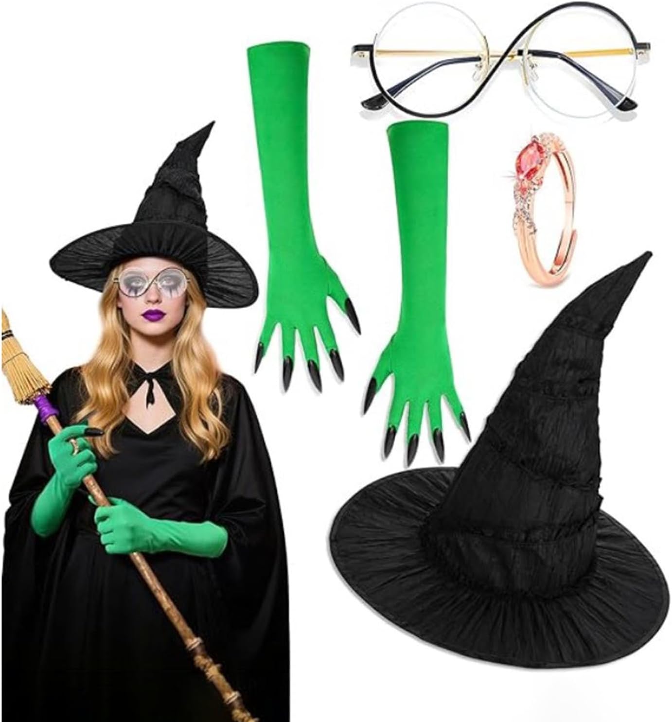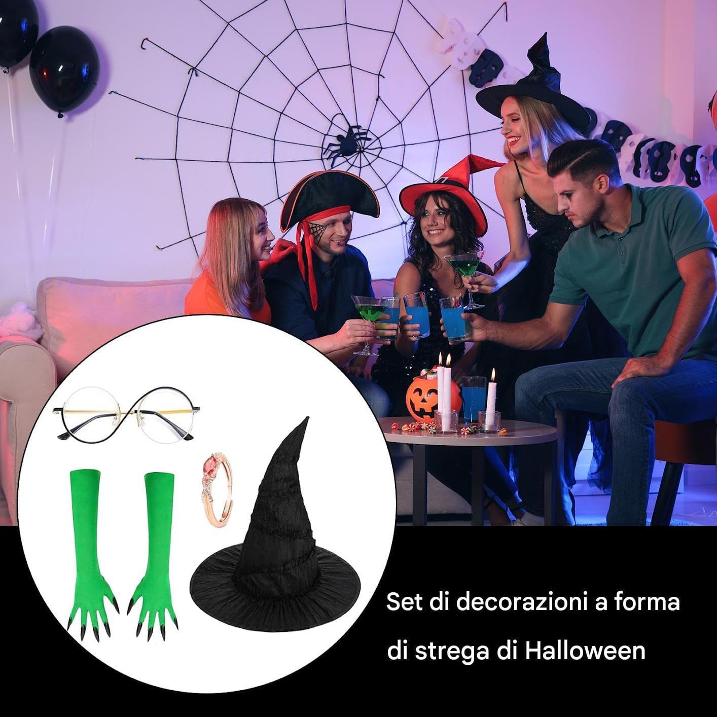 Generico Vestito da per Donne - Cappello da con Guanti Verdi ad Artigli | Completo per Cosplay Halloween Festa Carnevale Maschere Ruoli Compleanno