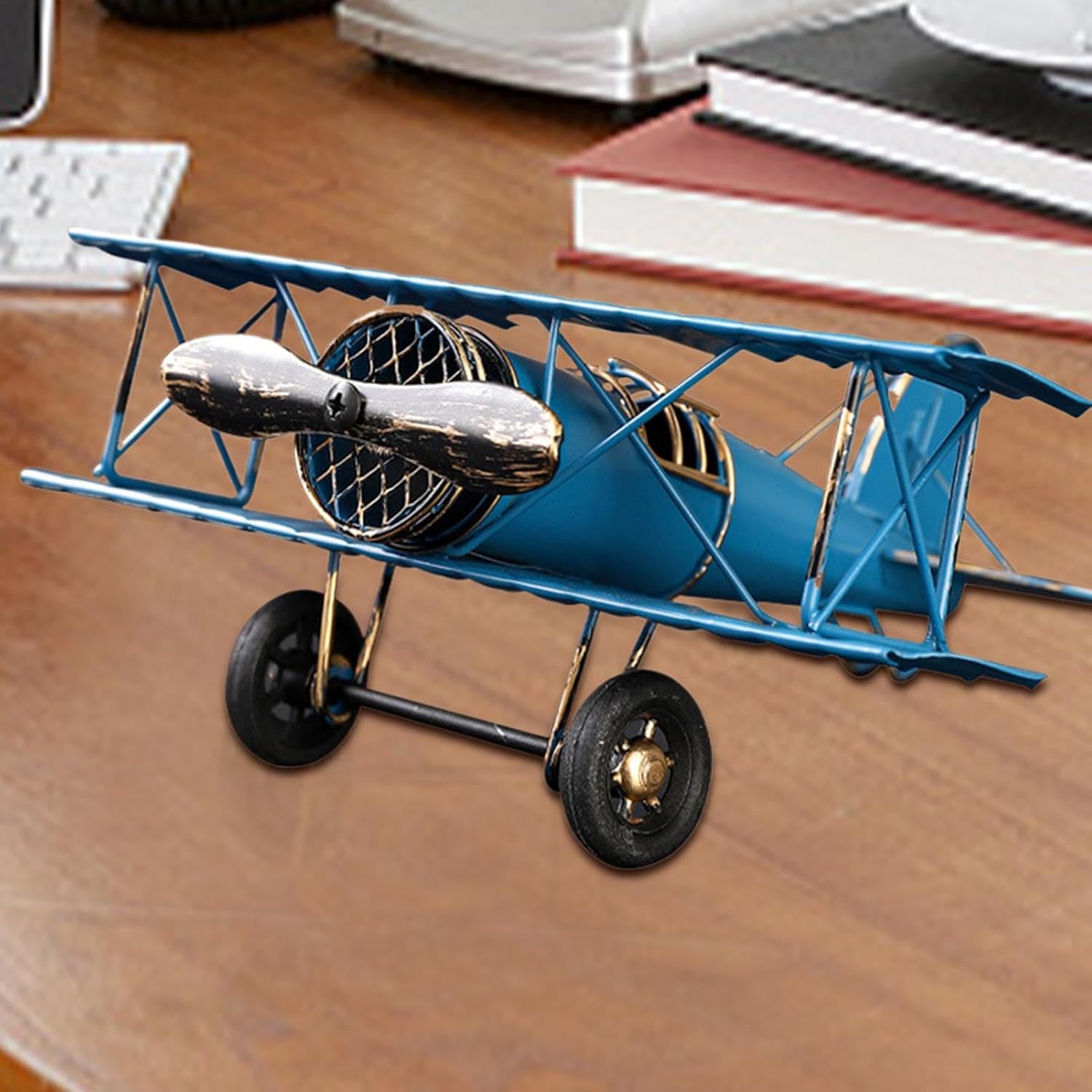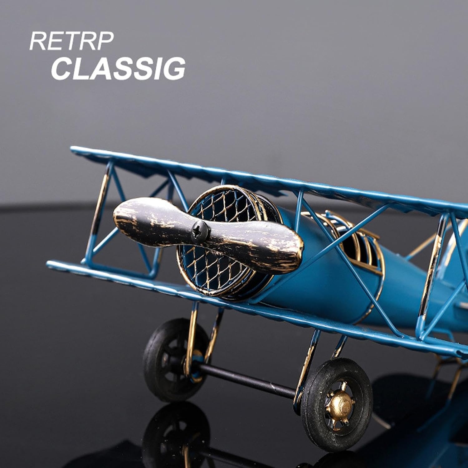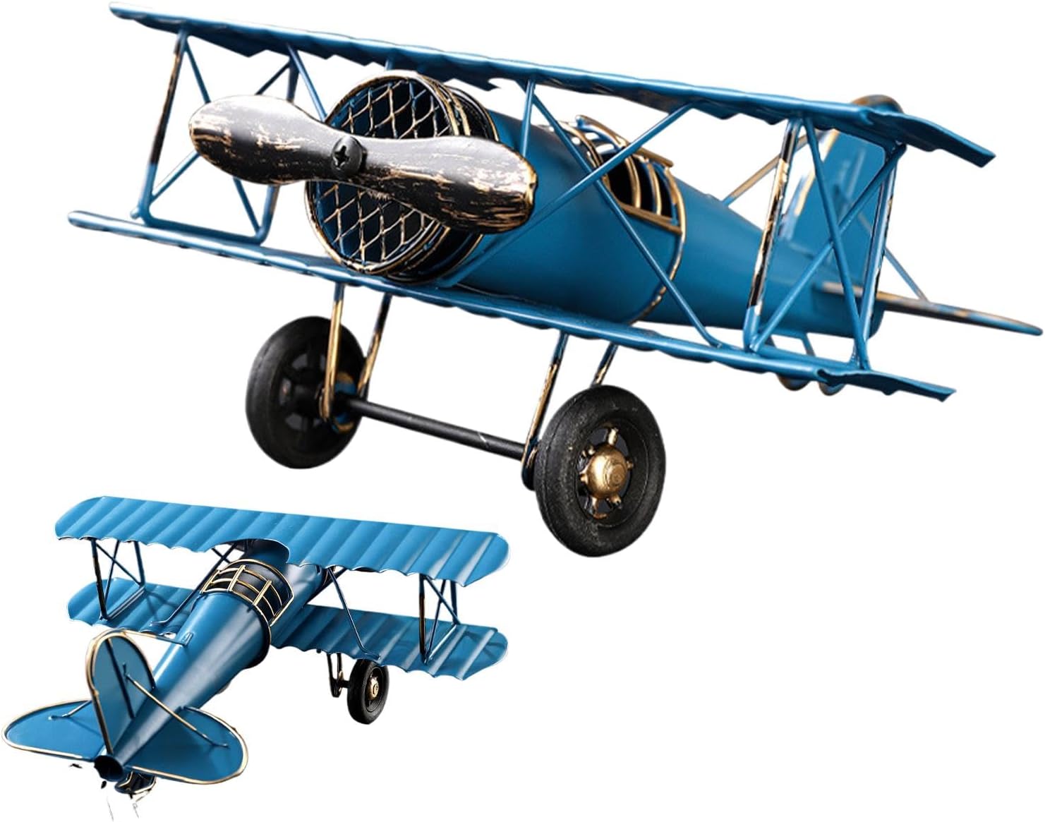 Classic Vintage Airplane Design: This biplane airplane model features a retro and classic design, crafted from high-quality metal and iron. Its vintage aesthetic brings a touch of nostalgia to your home, making it a stunning decorative piece for any aviation enthusiast or collector. Durable Metal Construction: Made from sturdy metal and iron, this vintage airplane model is not only visually striking but also durable. The detailed craftsmanship ensures that it can withstand the test of time while maintaining its elegant appearance for .c Perfect for Home Decor: Whether displayed in your living room, , or study, this retro plane aircraft adds a unique and sophisticated charm to any space. It’s perfect as a focal point on a shelf, table, or mantle, making it a standout decoration in your home. for Aviation Enthusiasts: This biplane model makes a thoughtful and exciting gift for aviation lovers, model collectors, or anyone who appreciates vintage-style décor. It’s perfect for Christmas, birthdays, or any special occasion, bringing joy and a sense of adventure to its recipient. Versatile Decoration for Special Occasions: In addition to everyday home décor, this vintage airplane model is an excellent decoration for themed events or parties. It can be used as part of a travel, adventure, or vintage aviation theme for an extra touch of class during celebrations or gatherings.