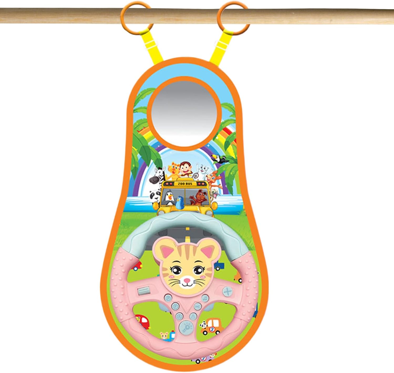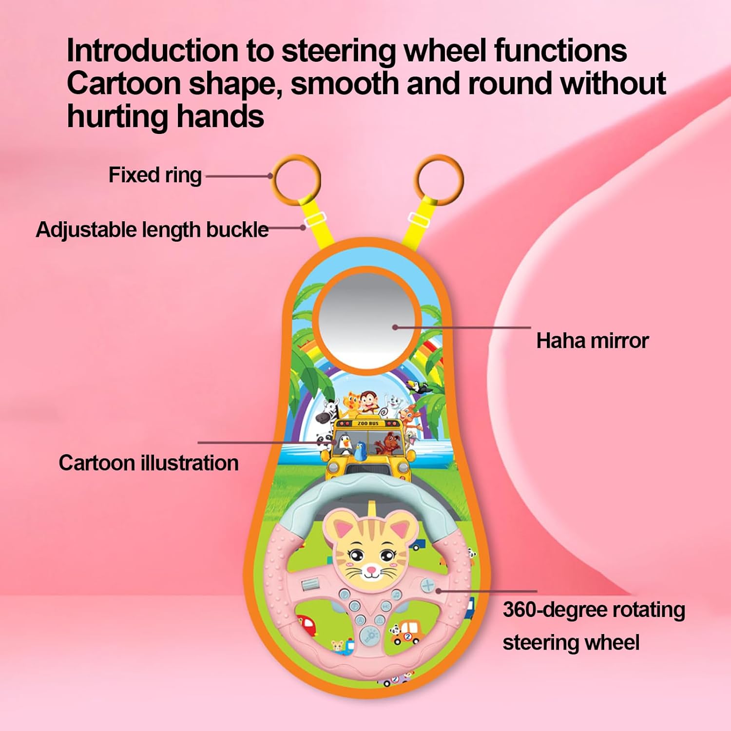 Bambini e divertimento sicuro: il volante giocattolo del seggiolino per auto invita i bambini a esplorare un design adatto ai bambini con grafica da cartone animato, materiali morbidi e una forma arrotondata con bordi lisci, eliminando il rischio di lesioni. Configurazione semplice: intrattieni il tuo bambino durante i lunghi viaggi con questo volante giocattolo facile da installare. Il semplice anello di fissaggio e la cinghia regolabile rendono l'installazione un gioco da ragazzi e può essere riprodotta ovunque. Suoni realistici. Tempo di gioco: il nostro volante giocattolo offre al tuo bambino un viaggio interattivo di divertimento e avventura con suoni vividi e accattivanti ed effetti visivi affascinanti che imitano una vera esperienza di guida. Guarda la loro immaginazione volare con illustrazioni vivide e ore di emozionanti giochi mortali. Comodità alimentata a batteria: lascia che il tuo piccolo guidatore provi il divertimento della guida, un must per ogni viaggio in auto, comodamente alimentato a batteria da tre batterie AA. Educazione interattiva: trasforma i banali giri in auto in un'esperienza di apprendimento interattivo con il nostro volante giocattolo. Coinvolge tuo figlio ed è divertente, rendendolo il giusto strumento educativo per apprendere le regole del traffico e le abilità di guida. An interactive learning experience awaits