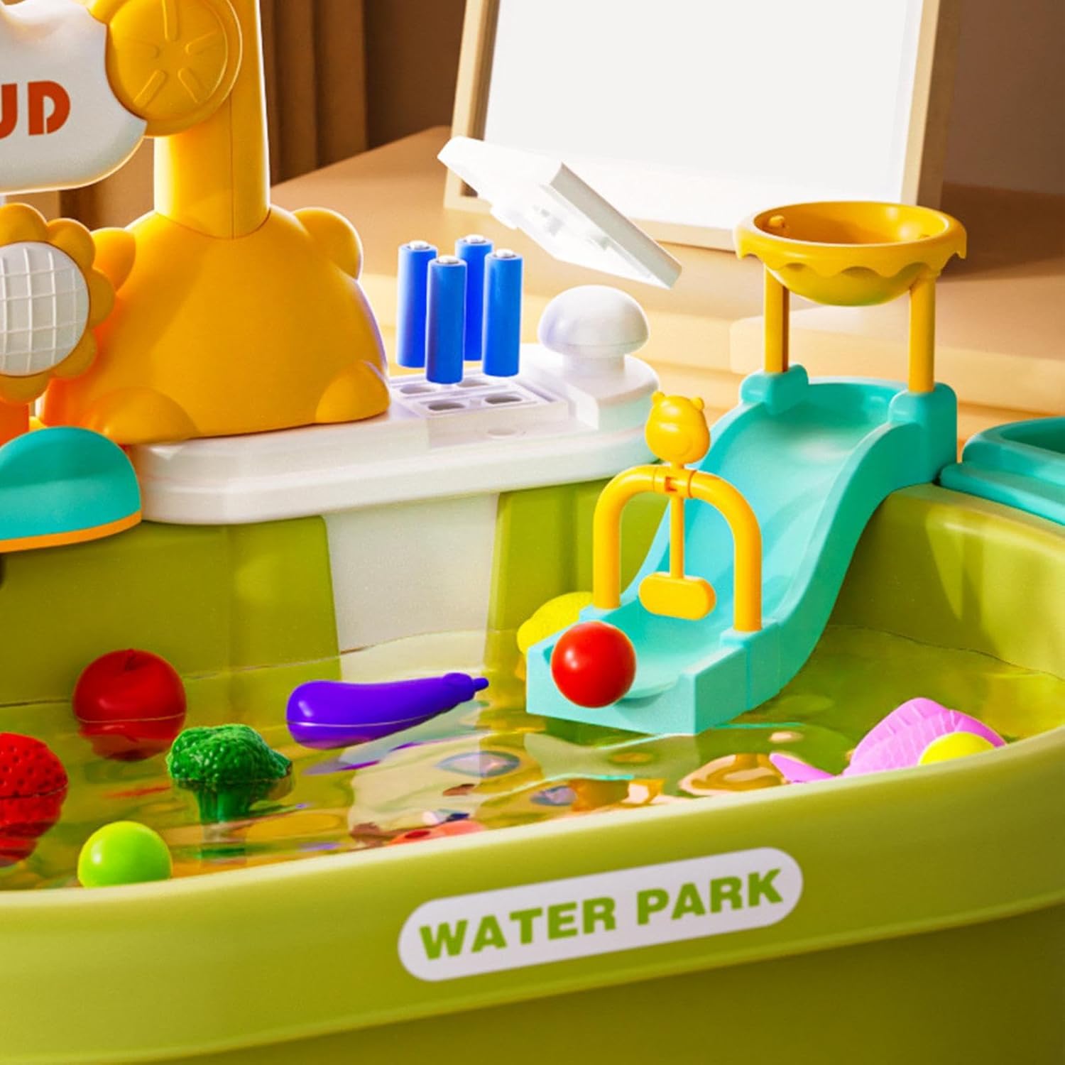 Multi-Activity Water and Sand : Combines water pouring, sand building, kitchen role-play, and fishing games into engaging play table that promotes imaginative play and hands-on learning for and preschoolers Perfect Size for Group Interaction and Sharing: Measuring 23.62x12.99x17.32 inches, this large play table provides ample space for multiple kids to interact, fostering teamwork and social development through cooperative activities Portable and Versatile for All Settings: Lightweight yet sturdy design makes it easy to move and set up at the beach, park, patio, or indoors, offering kids a consistent source of entertainment during picnics, camping, or daycare Includes Fun and Educational Accessories: Features pretend kitchen tools, mini fishing rods, sea creatures, and scooping toys that enhance motor skills, encourage curiosity, and inspire kids to create their own storylines Easy to , Clean, and Store Away: Made of durable with rounded edges for safety, the components together quickly and are easy to rinse after play, making it parent-friendly and clutter-free when not in use