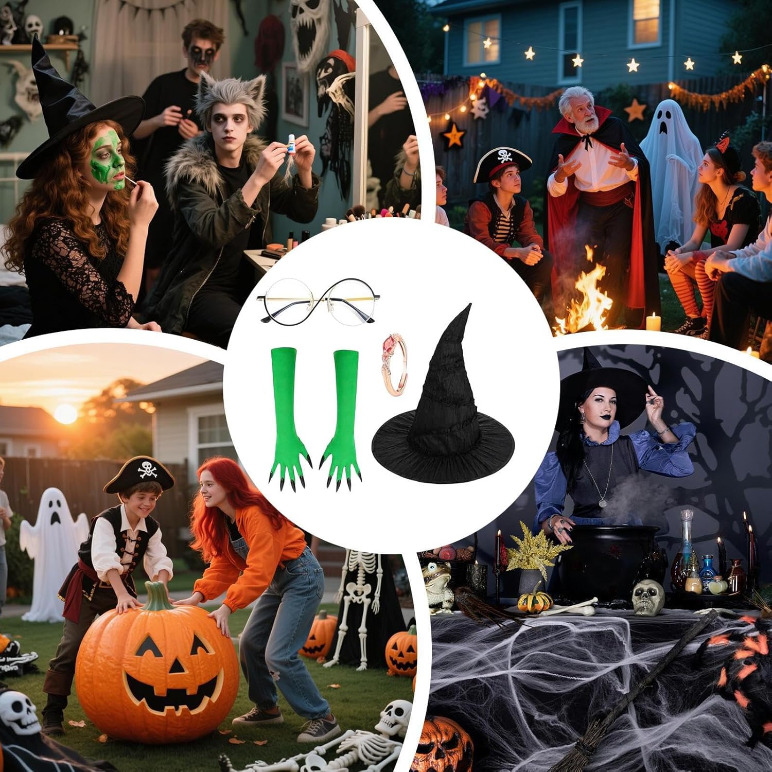 Descrizione prodotto Designed for Halloween and cosplay fans, this witch costume combines foldable and portable features, making it a must-have dress-up kit for festivals, birthdays, and role-playing events. It enhances movie nights, masquerade parties, and carnival celebrations, while doubling as a decorative piece. Its ease of use and versatility ensure it meets the demands of various themed occasions with effortless elegance. Specification: Product size: average size Packaging size: about 32x24x8cm/12.6x9.45x3.15 inches Packing List: Witch Costume Set*1 piece(hat*1 piece+ cape*1 piece+ gloves*1 pair + pants*1 piece) Or Witch Costume Set*1 piece (gloves*1 pair + hat*1 piece + glasses*1 piece + bracelet*1 piece) Note: Due to different lighting and screen settings, the item color may be slightly different from the picture. Due to different manual measurements, please allow a 1-2cm difference in size. Avviso di sicurezza Non applicabile
