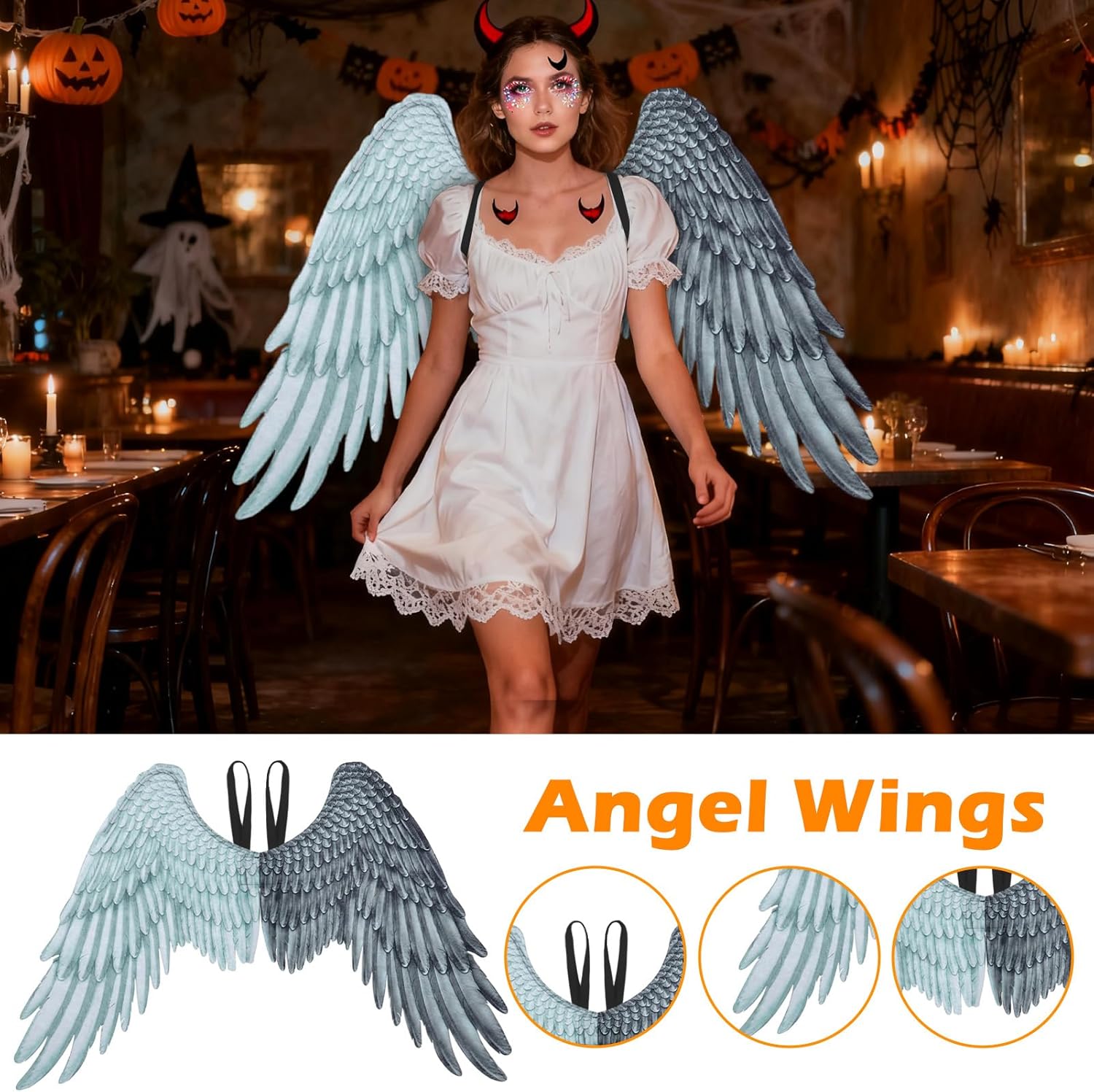 Capolavoro ideale per eventi: progettato per distinguersi dalla massa, il costume delle ali d'angelo arricchisce le celebrazioni delle feste e gli eventi a tema con il suo design distintivo. Offre doppi vantaggi per spettacoli teatrali e celebrazioni quotidiane migliorando efficacemente l'atmosfera generale. Questo costume da angelo è una scelta eccezionale per aggiungere un tocco e un carattere indimenticabile alla riunione, una presenza visiva che affascina e incanta il pubblico attraverso S Comfort affidabile in movimento: le ali degli angeli presentano un design robusto che si adatta alle forme del corpo e un sistema di cinghie elastiche regolabili per favorire la mobilità illimitata durante l'uso prolungato, oltre a una vestibilità sicura e antiscivolo e offre una vestibilità comoda sulla schiena anatomica, adatta a scenari quotidiani come lo shopping o la partecipazione a riunioni sociali, per il comfort in qualsiasi situazione. Accessori cosplay coinvolgenti: le grandi ali d'angelo migliorano le produzioni teatrali e gli spettacoli dei festival fungendo da accessori funzionali per feste in maschera, arricchendo eventi scolastici e incoraggiando attività fantasiose con gli amici per un'esperienza artistica condivisa e accessori per costumi. Vestibilità elegante per prestazioni: le ali d'angelo presentano un design ad ala morbido e leggero combinato con una struttura in tessuto non tessuto resistente per creare un accessorio robusto ed elegante. Migliorano qualsiasi outfit con autenticità per feste, spettacoli o esperienze di gioco di ruolo coinvolgenti. La combinazione di comfort e stile consente una perfetta integrazione e una vestibilità comoda durante eventi vari e più lunghi. Compatibilità con toni neutri: Angel Wings Adult offre compatibilità unisex con toni neutri, creando un look versatile con una silhouette pulita che si adatta a qualsiasi costume di genere neutro. Gli accessori personalizzabili per le ali elevano l'aspetto dell'angelo e consentono una perfetta integrazione in vari temi creativi come feste in maschera o raduni fantastici.