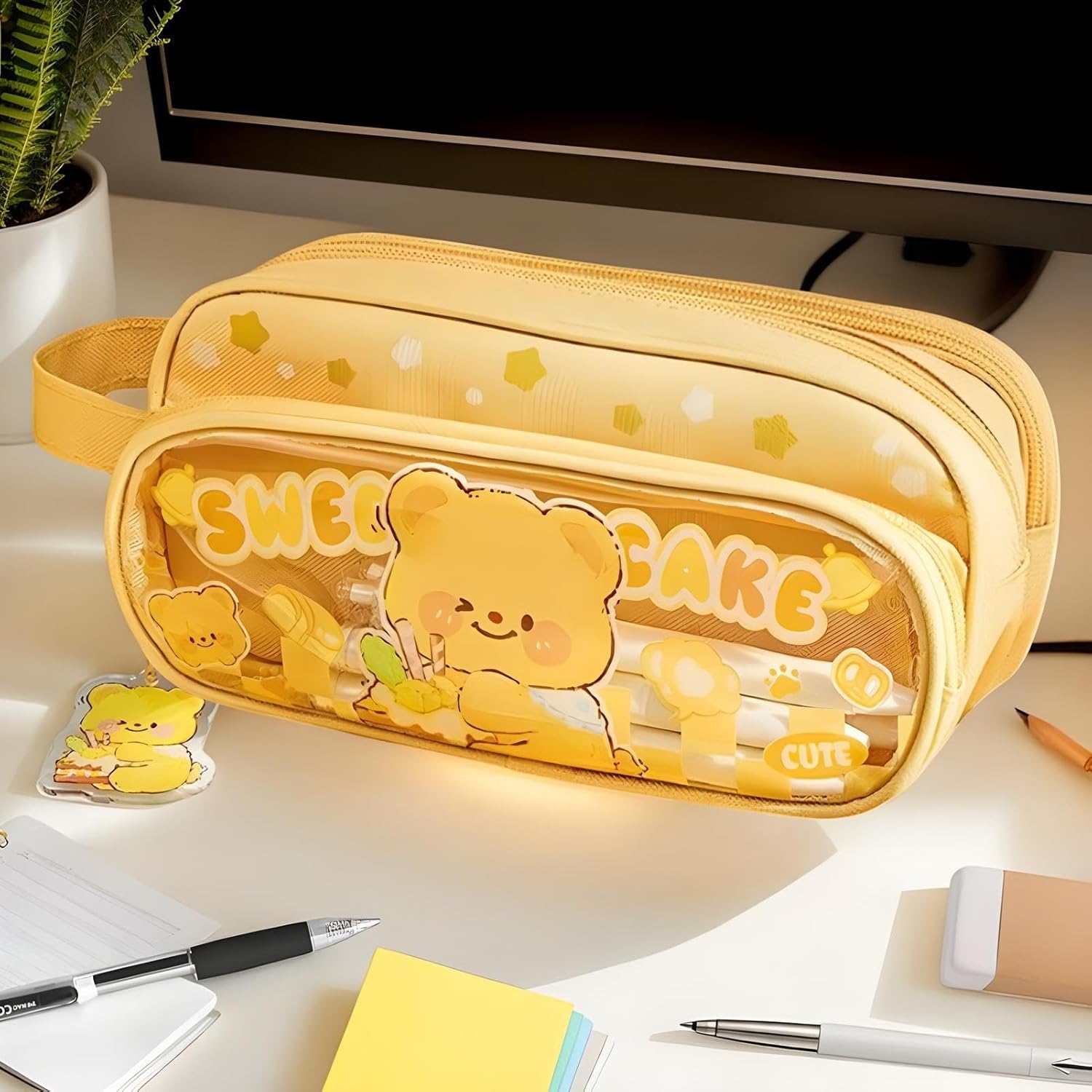 Design per bambini: la combinazione di tonalità calde con simpatiche illustrazioni di animali crea un compagno di studio coinvolgente. Questo astuccio rende le attività quotidiane allegre, favorendo l'organizzazione grazie al suo stile cartoonico rilassante che motiva usarle quotidianamente. Affidabilità quotidiana: soluzione inodore e antiusura appositamente studiata per gli scolari, questo necessario per matite mantiene la sua forma e funzionalità nonostante le manipolazioni ripetute, garantendo un accessorio di archiviazione scolastica durevole e pratico Portabilità ottimizzata: astuccio versatile con una maniglia per il trasporto facile e una presa morbida, ideale per le forniture scolastiche quotidiane e le avventure all'aperto, offrendo una portabilità adatta per Design funzionale: astuccio a 3 livelli accogliente 100 penne, conserva forniture scolastiche e regole in ordine per una migliore efficienza di apprendimento senza ingombro Organizzazione pratica: grazie alla sua finestra trasparente, questo astuccio offre un accesso rapido ai tuoi oggetti essenziali, eleganza e funzionalità pratica per ridurre le ricerche e semplificare la tua vita quotidiana, ottimizzando la conservazione degli articoli scolastici.