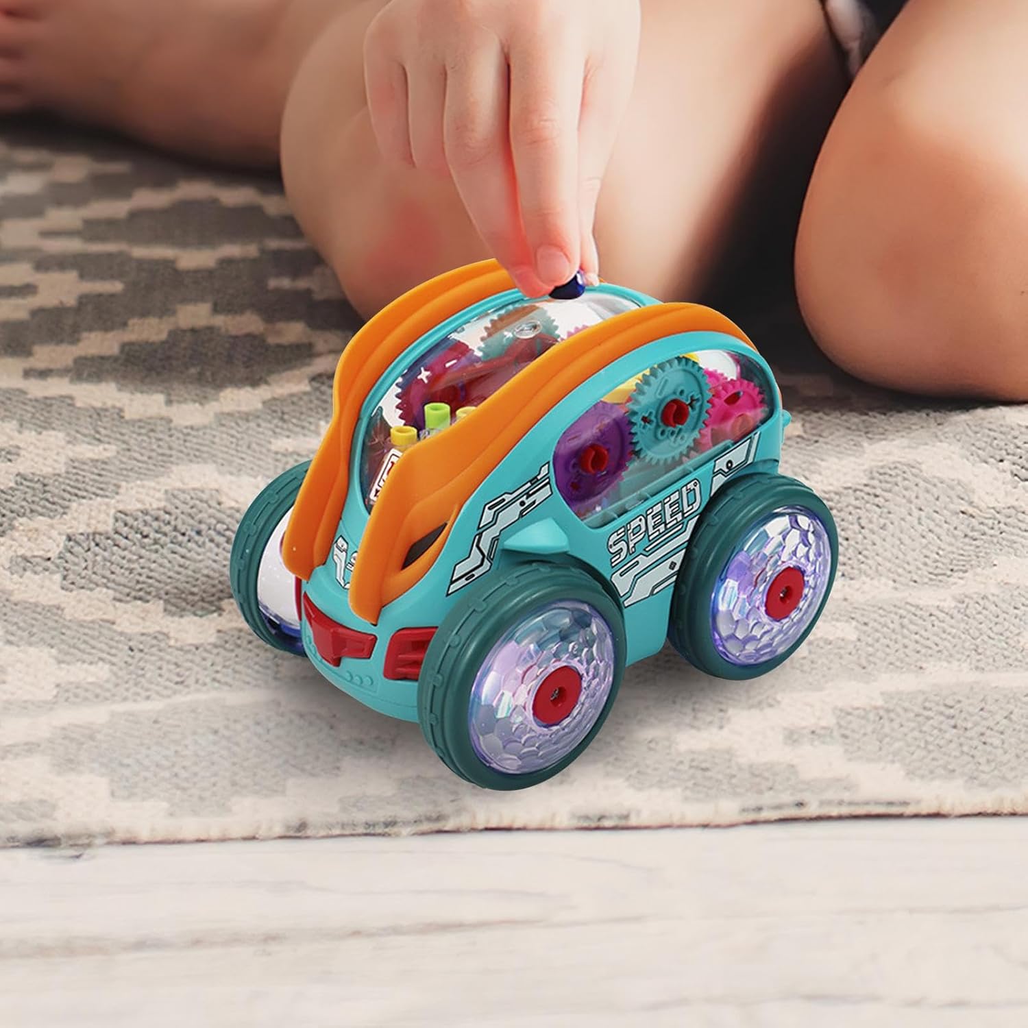 Durata eccezionale: design intelligente con assemblaggio rinforzato e ruote a doppio cuscinetto che consentono ore di gioco attive, mantenendo l'integrità strutturale grazie a materiali riciclabili di alta qualità Condivisione familiare: giocattolo versatile che consente attività intergenerazionali, progettato per rafforzare i legami familiari sviluppando la fiducia in se stessi attraverso meccanismi di controllo intuitivi e responsabilizzanti Gioco creativo dinamico: Veicolo telecomandato dotato di movimenti rotanti a 360 e prestazioni acrobatiche accattivanti, offrendo ore di divertimento incoraggiando l'invenzione di scenari giocosi e lo sviluppo di abilità cognitive. LED accattivanti: sistema di illuminazione a LED integrato che produce modelli mutevoli durante le cascate, rafforzando l'interattività attraverso reazioni luminose dinamiche che mantengono l'impegno durante le gare acrobatiche Intrattenimento musicale educativo: le melodie accattivanti ed effetti sonori interattivi favoriscono naturalmente la coordinazione motoria mantenendo l'interesse dei giovani utenti durante le acrobazie del veicolo giocattolo