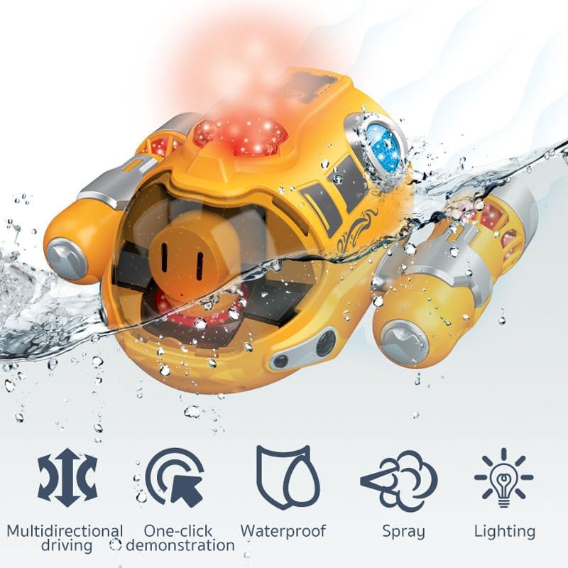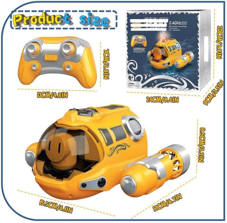 Telecomando a spruzzo e luce subacquea: telecomando wireless a 2,4 GHz, può essere utilizzato in tutte le direzioni, quando si preme il pulsante di spruzzatura, il telecomando della barca può spruzzare nebbia d'acqua, quando si preme il pulsante di illuminazione, il sottomarino diventa più colorato. Per facilitare la spruzzatura del sottomarino, immergere la barca a motore telecomandata in acqua per un po 'fino a quando il cotone assorbente non è completamente saturo di acqua e continuamente può spruzzare. Design impermeabile completamente impermeabile: questo giocattolo per barca da piscina RC è progettato con un coperchio della batteria impermeabile e un anello di tenuta in gomma per garantire che l'acqua non entri nella macchina durante l'uso, il che garantisce che la batteria sia asciutta e prolunghi la sua durata. La maniglia del telecomando impermeabile sigillata può giocare con la barca a motore spruzzatore in acqua. Batteria e ricarica: il nostro giocattolo da barca con telecomando dispone di una serie di batterie al litio ricaricabili da 3,7 V 500 mAh con cavo di ricarica USB e maniglia del telecomando. Una volta che le batterie sono completamente cariche, il bambino può godere di circa 20 minuti di tempo di gioco del telecomando Happy (il tempo di ricarica è di circa 70 minuti). La ricarica e l'uso adeguati del giocattolo prolungano la durata delle batterie per una maggiore durata di gioco. Impermeabile e durevole: questo giocattolo per barca da piscina RC è progettato con un coperchio della batteria impermeabile e un anello di tenuta in gomma per garantire che l'acqua non entri nella macchina durante l'uso, il che garantisce che la batteria sia asciutta e prolunghi la sua durata. La maniglia del telecomando impermeabile sigillata può giocare con la barca a motore spruzzatore in acqua. Regalo estivo: la barca a motore a getto d'acqua telecomandata ha un design luminoso e carino ed è un ottimo regalo estivo per ragazzi e ragazze. È pieno di molte funzioni e funzioni divertenti, il che lo rende un regalo che i bambini non dovrebbero perdere. Può essere utilizzato in una varietà di ambienti come laghi, piscine e fiumi.