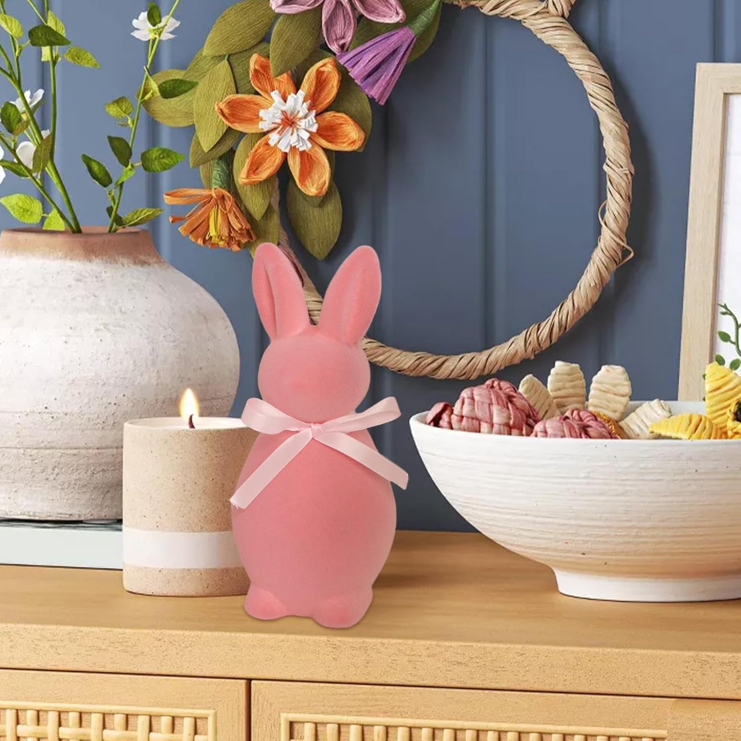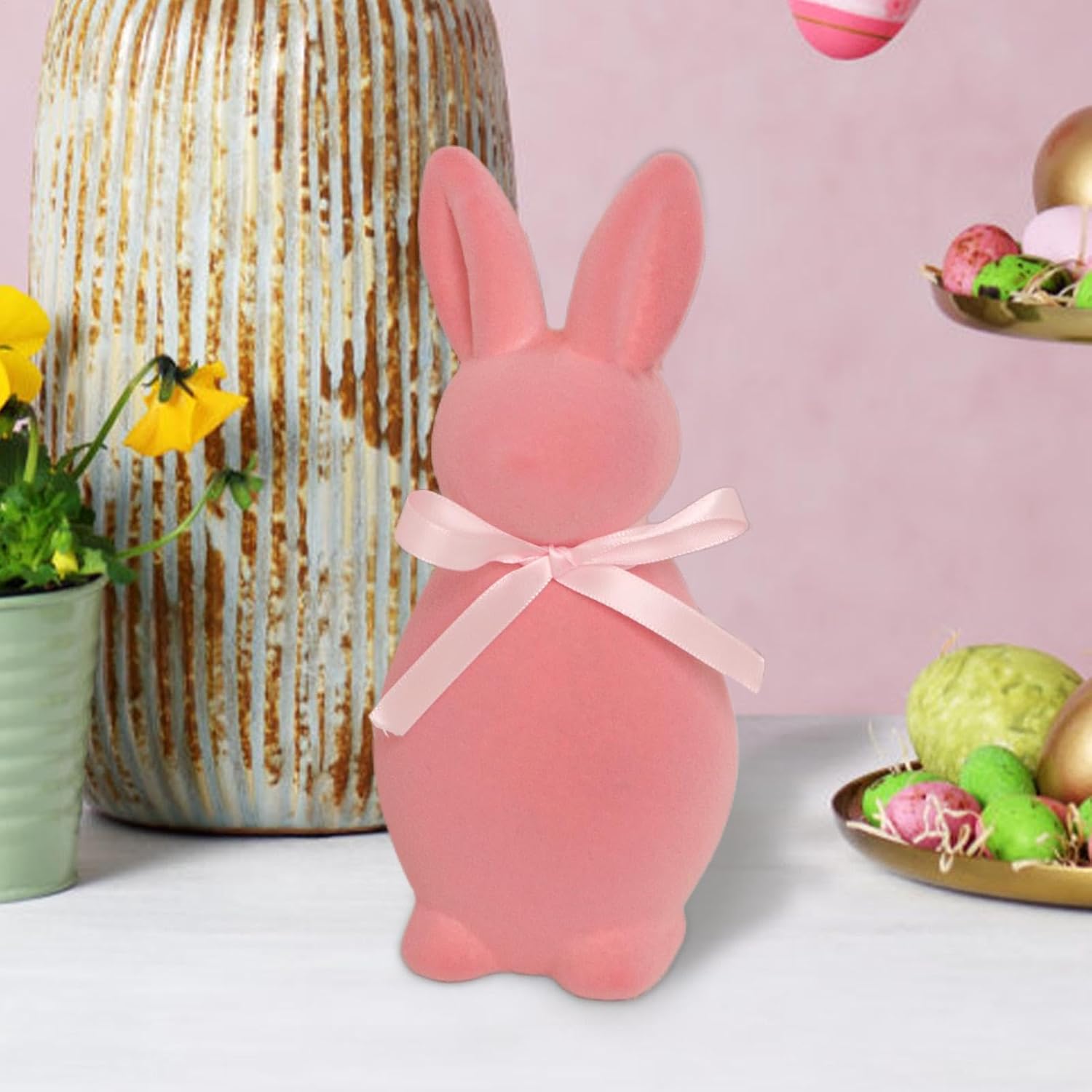 Ideale per la casa, le feste e i festeggiamenti: utilizzato da solo o combinato con altre decorazioni pasquali. Questa statuetta di coniglietto mostra esposizioni stagionali, adatte per casa, uffici, aule ed eventi Leggera e portatile per opzioni di decorazione versatili: compatta e facile da posizionare su mensole, librerie, scrivanie o finestre e per decorazioni creative in varie stanze come soggiorni, uffici, cucine e camere da letto Decorazione perfetta per la tavola per ospiti e feste di Pasqua: un'ottima aggiunta alla tavola delle vacanze, questa simpatica statuetta di coniglio funge da accattivante centrotavola, portando calore e fascino a cene di famiglia, brunch ed eventi festivi Finitura in velluto morbido al tatto per un look elegante ed elegante: Rivestito in materiale floccato di alta qualità che dona una sensazione liscia e morbida, ne migliora l'aspetto visivo e fornisce un lussuoso elemento decorativo per tavoli, scaffali ed espositori. Affascinante statuetta di coniglietto floccato per decorazioni festive di Pasqua: adorabile progettato con una consistenza morbida e vellutata, questo coniglietto pasquale floccato aggiunge un tocco accogliente e stravagante alle decorazioni domestiche stagionali, rendendolo un delizioso accento per le celebrazioni primaverili.