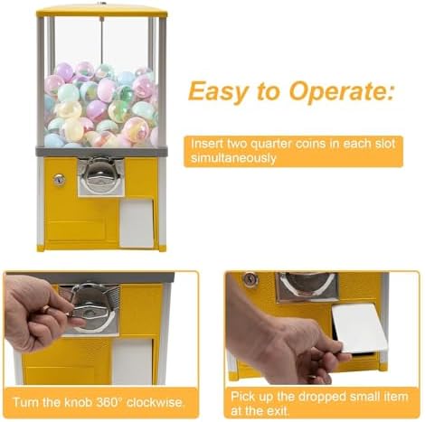 PROGETTATO PER LA DURABILITÀ: il nostro distributore di caramelle è realizzato in lega di alluminio e zinco di alta qualità. I materiali in ABS e PS offrono un'eccezionale resistenza agli urti, alla rottura e alla deformazione, garantendo una durata eccezionale. La sua struttura rettangolare garantisce una stabilità ottimale e un'elevata capacità di carico, permettendoti di usarlo con sicurezza anche quando è pieno di giocattoli e circondato da bambini. GRANDE CAPACITÀ: Misura 26 x 29 x 53 cm, questo dispenser può contenere tra 800 e 1000 pezzi, oltre a 200 uova intrecciate (4,3 cm) o 150 uova intrecciate (4,8 cm). Questa generosa capacità riduce la necessità di frequenti ricariche, soddisfacendo così le aspettative di intrattenimento dei visitatori nella maggior parte dei centri commerciali e dei parchi di divertimento. ALTA SICUREZZA: Dotato di una robusta serratura sulla parte superiore e di un salvadanaio sicuro, questo distributore protegge i vostri giocattoli e pezzi dal furto. Il telaio girevole consente ai clienti di individuare facilmente gli oggetti all'interno, aggiungendo uno strato di sicurezza e facilitando l'accesso. FACILITÀ D'USO: basta inserire due pezzi da 25 centesimi su ciascun lato dello slot per le parti (due a sinistra e due a destra, per un totale di quattro fessure) e ruotare il pulsante di 360° in senso orario per recuperare gli oggetti depositati all'uscita. Questo semplice meccanismo è facile da capire e richiede solo pochi minuti per padroneggiare. Il prodotto viene fornito per impostazione predefinita con quattro accettori di monete da 25 centesimi. UTILIZZO VERSATO: Questo distributore automatico è perfetto per vari ambienti, tra cui sale giochi, centri commerciali e negozi al dettaglio. Disponibile in una tavolozza di colori vivaci, arricchisce l'attrattiva visiva di giocattoli e dolci, creando un'atmosfera giocosa e accattivante.
