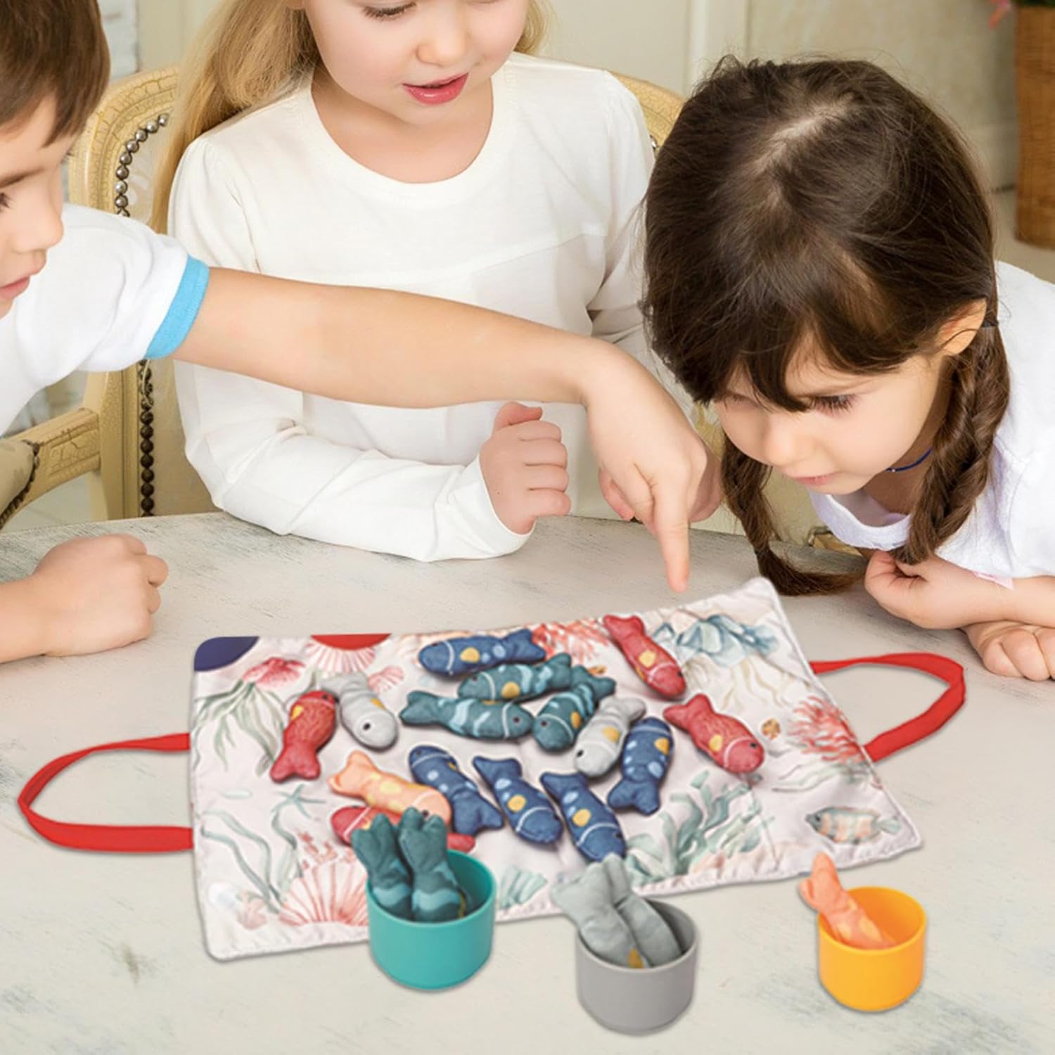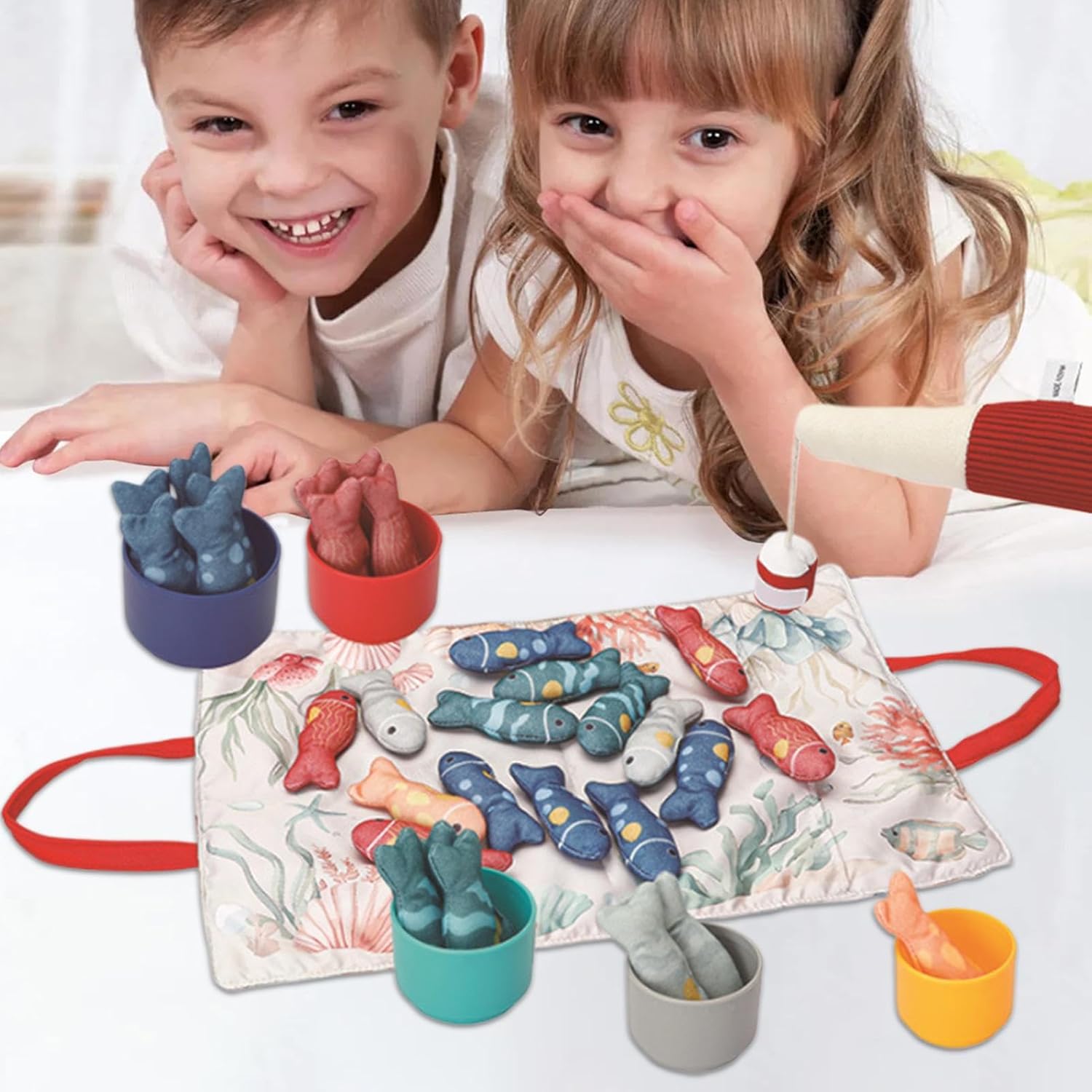 Portabilità ottimale: il tappeto in tessuto pieghevole semplifica lo stoccaggio e presenta una scena di gioco completa, una soluzione leggera ed economica in spazio per giochi di pesca da tavolo o a terra. Apprendimento progressivo: questo gioco di pesca per bambini offre livelli di difficoltà progressiva per sviluppare la coordinazione occhio-mano grazie agli adesivi tattili. Ideale come strumento di esplorazione interattiva, favorisce momenti di complicità genitore-figlio durante sessioni di gioco sensoriali. Sviluppo sensoriale: i colori vivaci forniscono eccitazione visiva, questo giocattolo è progettato per l'uso sui tappetini da gioco, mentre la sua struttura innovativa con superfici in rilievo, combinata con un tessuto morbido, garantisce comfort e salva la pelle tenera dei bambini durante il gioco. Apprendimento: Offrendo un'educazione sulla vita, questo gioco di pesca stimola il pensiero logico e incoraggia il gioco di ruolo. La sicurezza è garantita da bordi arrotondati e materiali standard di coloranti alimentari per esperienze di gioco esplorativo con fiducia. Divertente gioco magnetico: la canna magnetica incoraggia lo sviluppo delle capacità motorie fini attraverso catture precise, rafforzando la concentrazione e la pazienza durante l'interazione con i pesci adesivi.