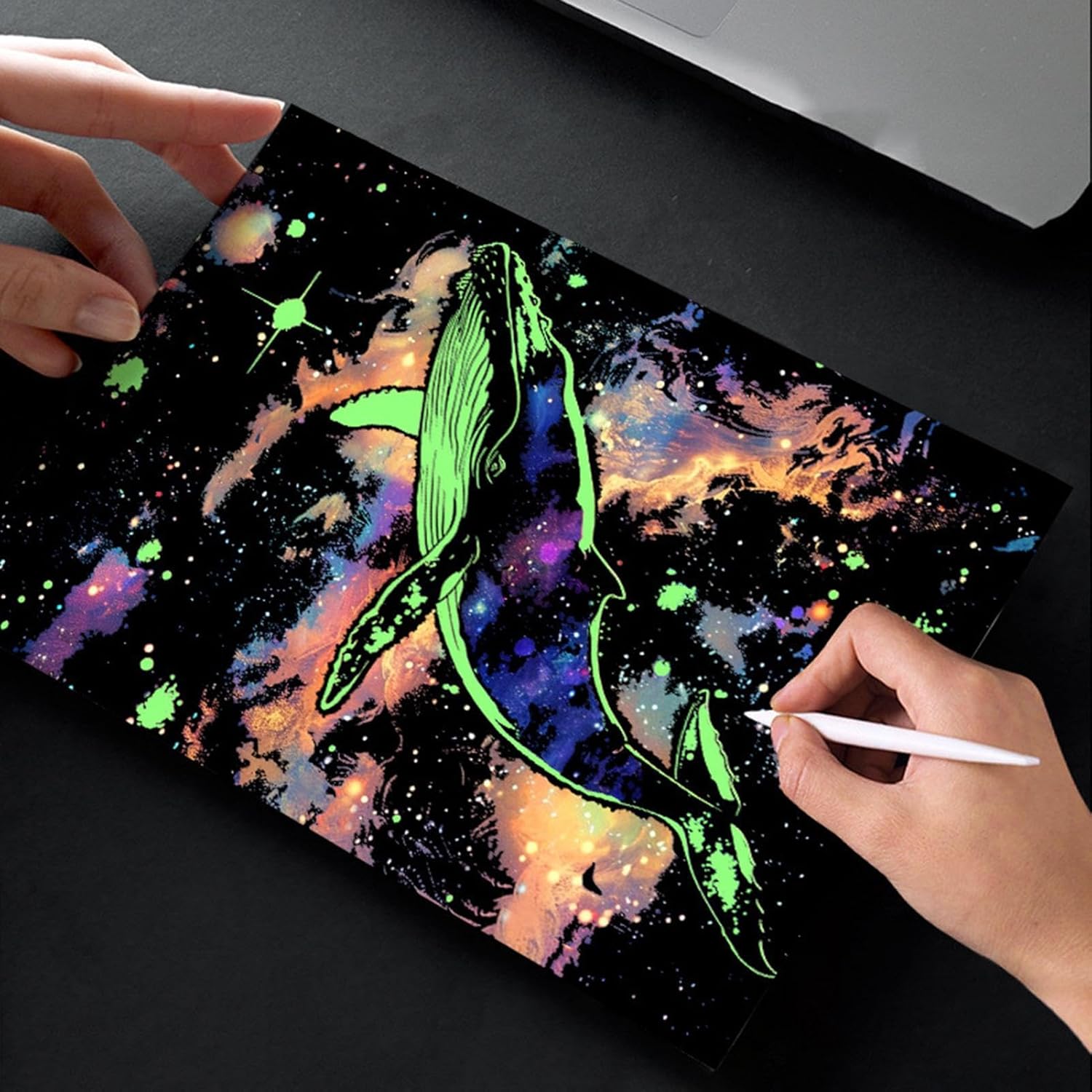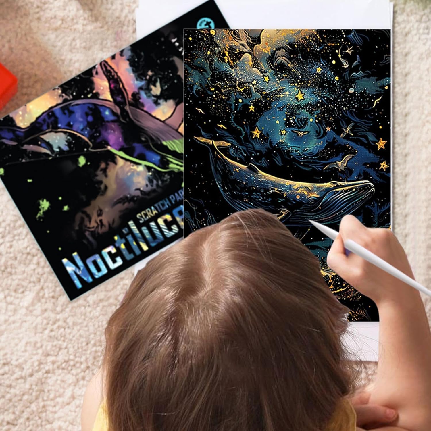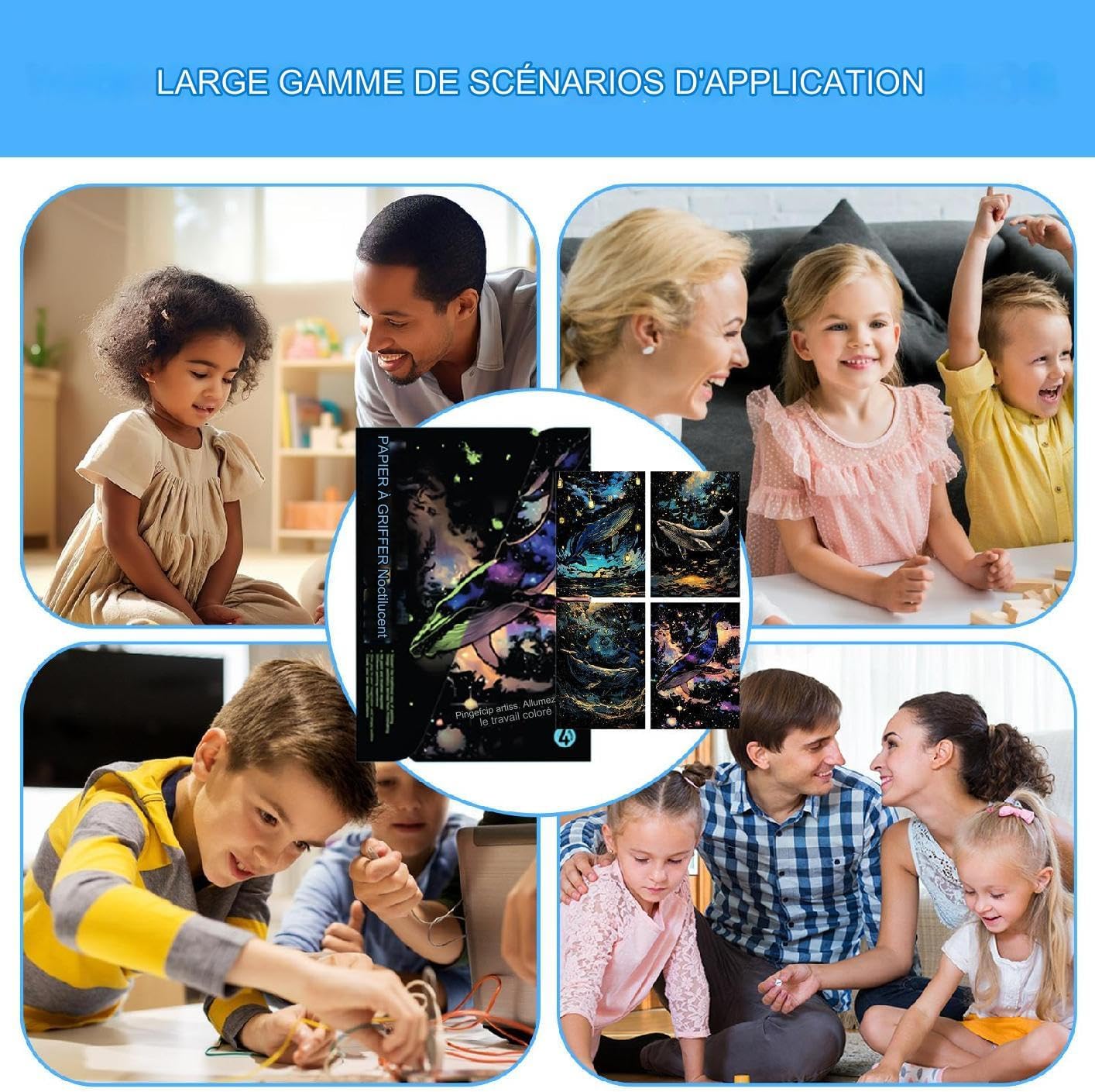 Creatività fosforescente: il kit di carta da grattare arcobaleno utilizza un materiale luminescente che amplifica il mistero e l'attrattiva visiva, consentendo agli utenti di realizzare disegni dal bagliore morbido e affascinante, adatto per mostre notturne o eventi a tema. Espressione Artistica Stimolante: il graffio del grigio fa emergere colori vivaci e motivi accattivanti, sviluppando la coordinazione occhio-mano e l'immaginazione di compleanni o pomeriggio calmi. Art Anti-Stress: Questa attività di raschiamento creativo permette di rilassarsi con la famiglia, promuovendo l'espressione artistica e la complicità tra tutte le generazioni attraverso la realizzazione di opere colorate e personalizzate Disegni artisticamente craftati: questo kit di raschiatura arcobaleno offre un'ampia selezione di modelli creativi che consentono di esplorare disegni diversi che risvegliano la loro immaginazione e rafforzano la creatività in laboratori a casa o in classe Decorazione artistica da murino: questo kit di arte da grattare arcobaleno incoraggia l'immaginazione aggiungendo un tocco di colore alle creazioni, esaltando l'aspetto visivo mentre esprime sentimenti, ideale come regalo di festa o di compleanno da appendere per decorare