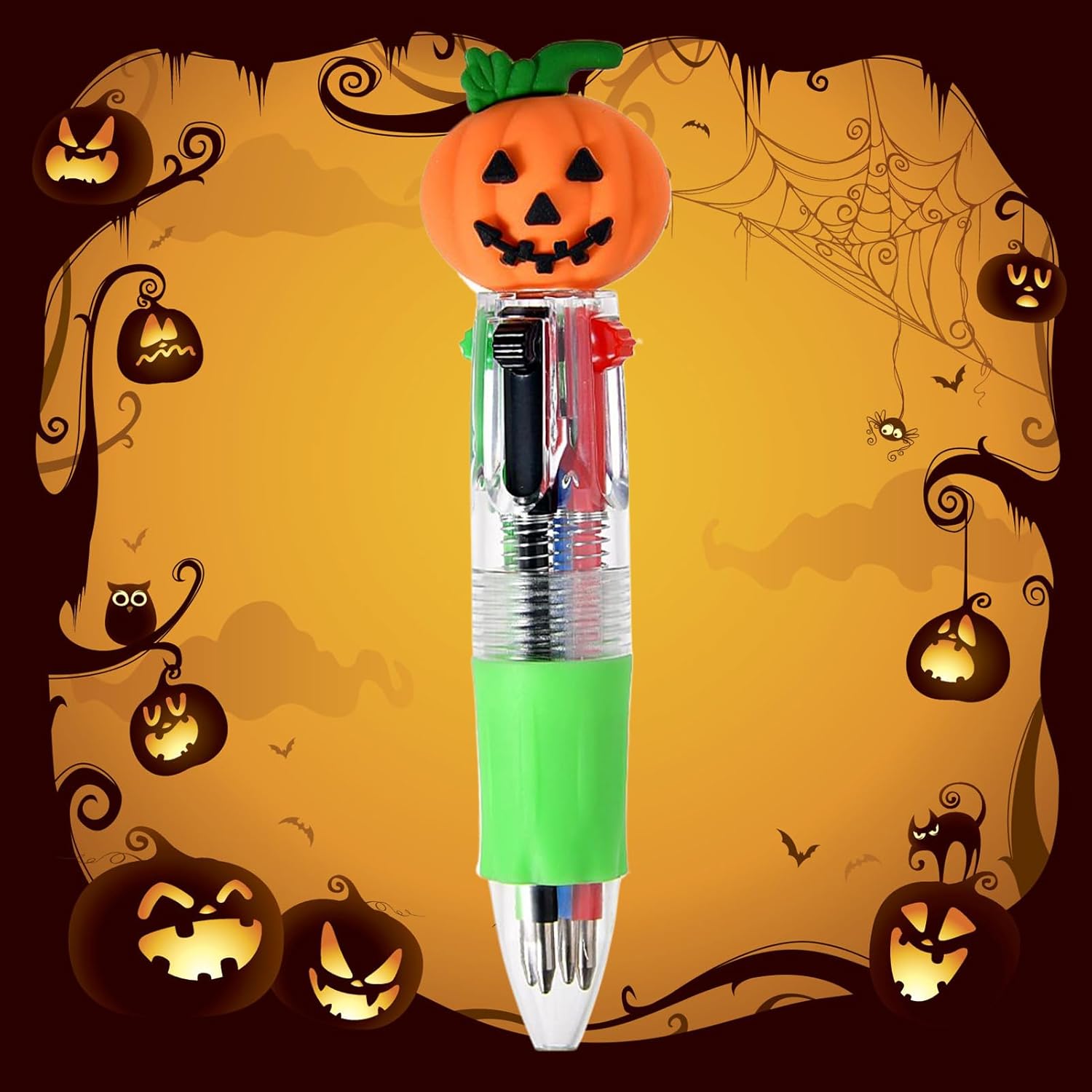 Prestazioni affidabili: il design resistente agli urti e alla pressione combinato con un guscio rinforzato consente transizioni di colore fluide e una lunga durata nonostante la manipolazione ripetuta. Divertente penna stagionale: adorabile design a tema Halloween con zucche e fantasmi in colori vivaci e allegri. Crea un'atmosfera festosa pur essendo un regalo emozionante e memorabile per i giovani. Perfetto per la scrittura creativa delle vacanze. Supporto: L'impugnatura antiscivolo favorisce una presa corretta, il suo peso bilanciato e la forma ergonomica riducono l'affaticamento della scrittura per adulti e adulti. Idea regalo perfetta: progettata per migliorare i momenti di donazione, questa penna multicolore eccelle come scelta ideale per compleanni, eventi scolastici e occasioni speciali. Porta calore e significato duraturo come ricordo premuroso e personale, rafforzando i legami tra le persone. Strumento versatile: penna compatta 4 in 1 per scrivere e disegnare, migliora la produttività dello studio con un cambio colore fluido e semplificato.