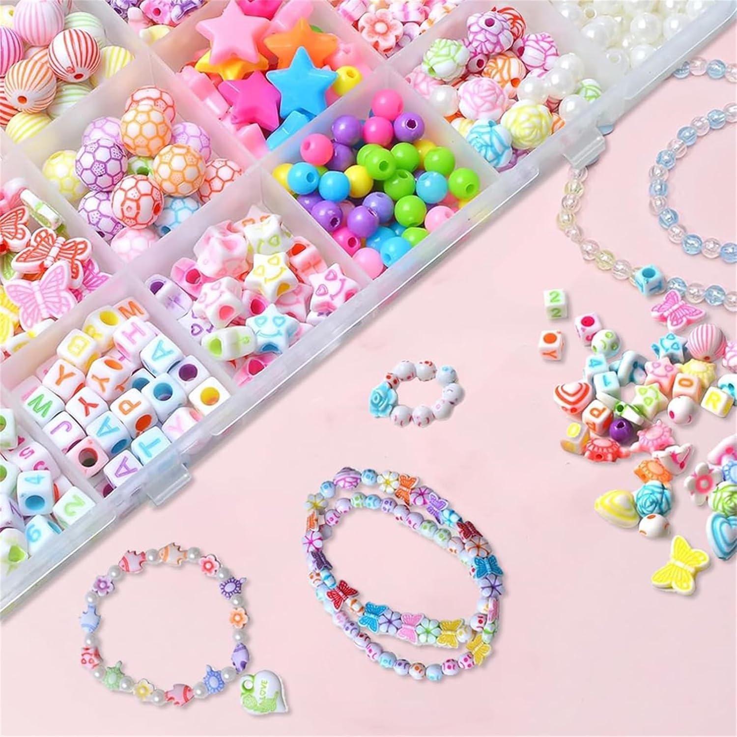 Set di perline fai da te: oltre 400-500 perline di vari colori e forme, tra cui perline bianche, fiori, farfalle, lettere, perline rotonde colorate, ciondoli, ecc. 10 m di nastro elastico di cristallo, 1 paio di forbici di sicurezza per bambini, 2 fasce in filo metallico, 6 fibbie, 6 anelli appesi, 1 ciondolo casuale. Materiale di alta qualità: kit perline gioielli adatto per realizzare attività manuali per bambini è realizzato in plastica acrilica, non tossico per l'ambiente, resistente. I bambini possono creare bellissime opere d'arte con queste perline in diverse combinazioni, possono creare forme diverse con la loro immaginazione. Facile da usare: le collane artigianali di ogni colore e stile sono confezionate in una scatola trasparente divisa, ordinata e bella, non caotica, facile da prendere, Il kit per fare collane è ricco di accessori e facile da completare l'artigianato senza strumenti aggiuntivi. Interattivo genitore-figlio: fai da te Braccialetti Collane di perle Gioielli Fare che è adatto sia per bambini che per adulti. Lavorare con il bambino per realizzare perline non solo migliora la coordinazione occhio-mano e sviluppa l'attenzione, ma stimola anche la creatività e l'immaginazione.