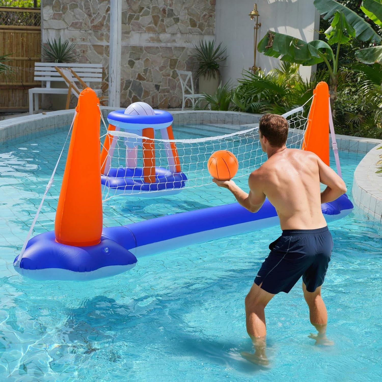Set di pallavolo regolabile: include una palla galleggiante durevole e inflatable progettata per una facile configurazione e regolazione sull'acqua, crea un'esperienza divertente e sfida per tutte le abilità Perfect for Pool, Lake, or Beach Fun: Ideal for cooling off while staying active, this water pallley set is suitable for use in pools, lakes, and calm beach waters, making it great for summer parties and outings Fun for All Ages and Group Sizes: incoraggia active play and teamwork among family members or friends, making it perfect for birthdays, backyard gatherings, team bonding, or spontaneous weekend fun Durevole e buoyant Costrution: Crafted from high-quality, buoyant materials that stay afloat while withstanding splashes and impact ensuring hours of reliable fun for kids, teens, and adults Easy to Pack, Inflate, and Play Anywhere: Lightweight and portable, this set deflates for compact storage and is quick to inflate at your destination—ideal for travel, beach vacations, or family road trips