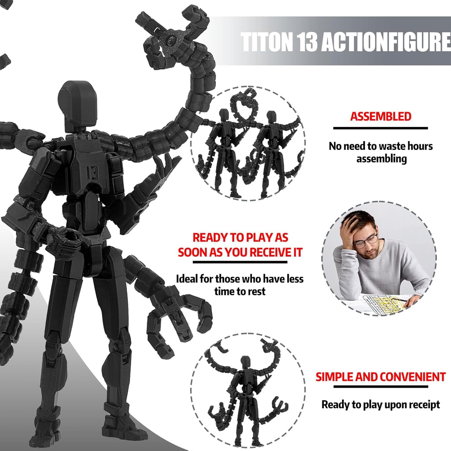 Esperienza Giocosa Creativa: Stimola l'immaginazione con infinite possibilità grazie a un supporto regolabile, 3 tipi di mani e 7 strumenti per creare look unici di figura articolata durante il gioco di esplorazione Esplorazione creativa: design a giunti mobili che sostengono il disegno e la pittura attraverso varie posizioni, stimolando l'immaginazione artistica e migliorando le abilità pratiche durante gli allenamenti creativi. Divertimento garantito: statuetta articolata con guarnizioni mobili e accessori multipli che offrono un regalo di qualità per occasioni festive, adatta per collezionisti che richiedono esposizione interattiva Adattabilità: eccellente per la pittura di modelli o l', questa statuetta articolata funziona anche come accessorio fotografico e pratico strumento per studiare l'anatomia in movimento. La sua articolazione fluida consente un'integrazione armoniosa in diversi contesti di utilizzo creativo. Resistenza Ottimizzata: struttura rinforzata e colori vivaci ottenuti mediante stampa 3D con materiali sicuri. Perfetto equilibrio tra robustezza ed estetica per un'esperienza coinvolgente.