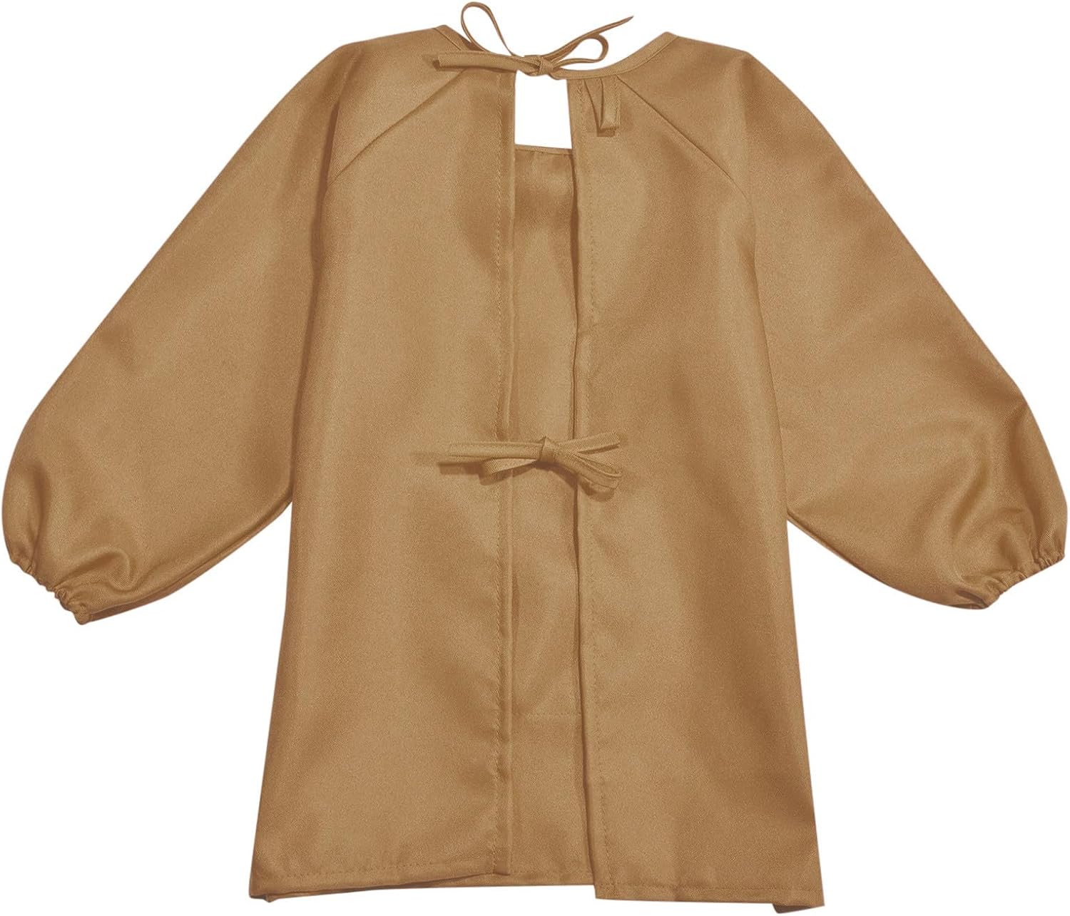 2025 Grembiule per bambini artistico con tasca per bambini Grembiuli da pittura a maniche lunghe Camicette a maniche corte per ragazze (cachi 4-8 anni)