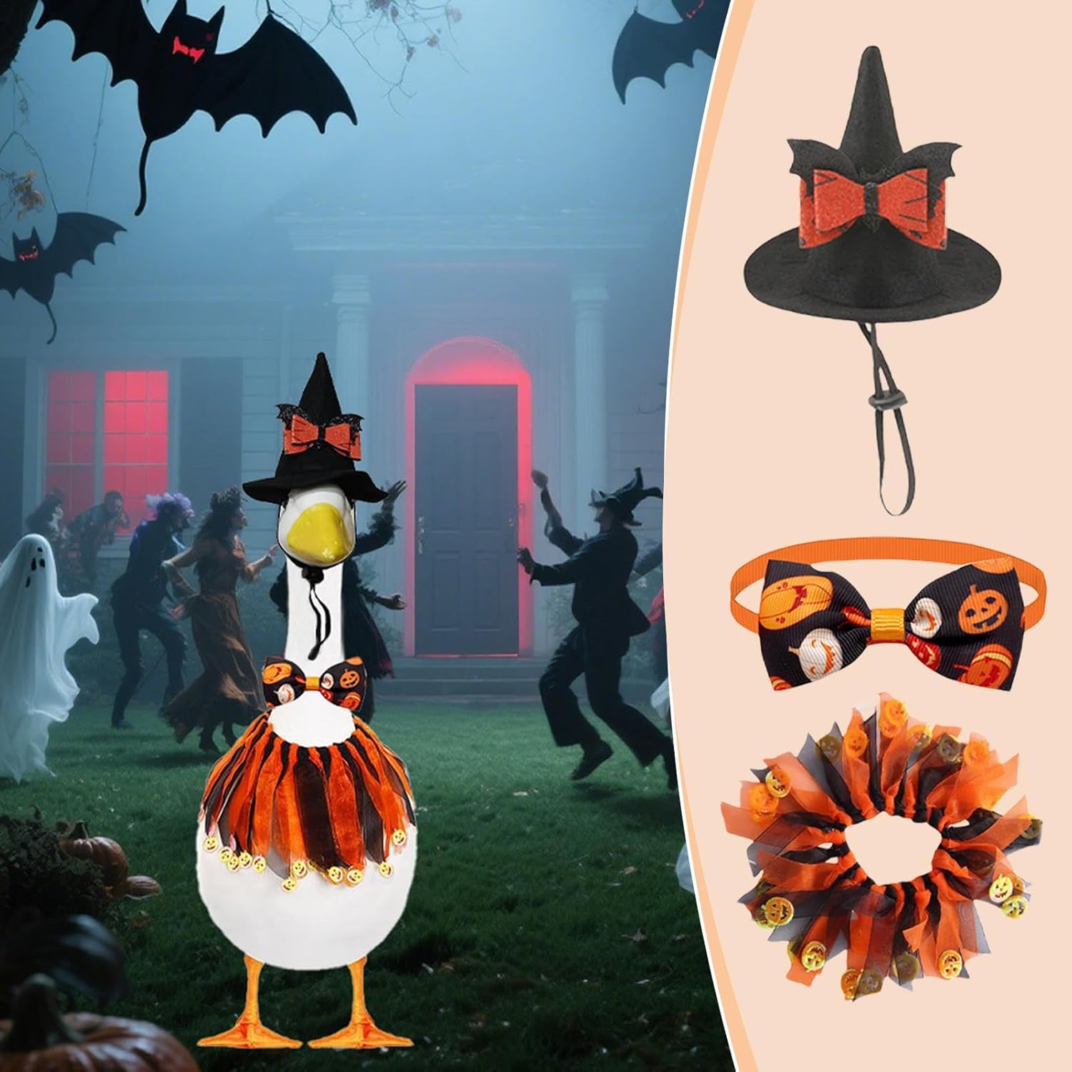 Design creativo della zucca: ispirato alle classiche lanterne di zucca, l'outfit convince con motivi fantasiosi, tonalità arancioni brillanti e affascinanti cappelli con fiocco - diffonde un'atmosfera autunnale suggestiva nel vostro spazio esterno. Robusti accessori per esterni: lavora materiali resistenti alle intemperie, pigmenti colorati resistenti alla luce e superfici resistenti alle macchie. L'abbigliamento per oche decorative offre un'eccellente protezione dalle intemperie, mostra una lavorazione affidabile ed è perfetto per l'uso all'aperto tutto l'anno. Italiano:Posizioni regolabili: Progettato per recinzioni, prati e portici con varietà garantita per interni ed esterni. Consente una varietà di opzioni di installazione in dimensioni universali. Scenario realistico: dai vita alle decorazioni festive di Halloween e diffondi efficacemente lo spirito spettrale per un'atmosfera festosa che trasforma senza sforzo i cortili in highlight stagionali. Montaggio senza attrezzi: il pratico sistema a scatto offre una soluzione di fissaggio riutilizzabile per cambiare facilmente gli indumenti d'oca per ogni occasione