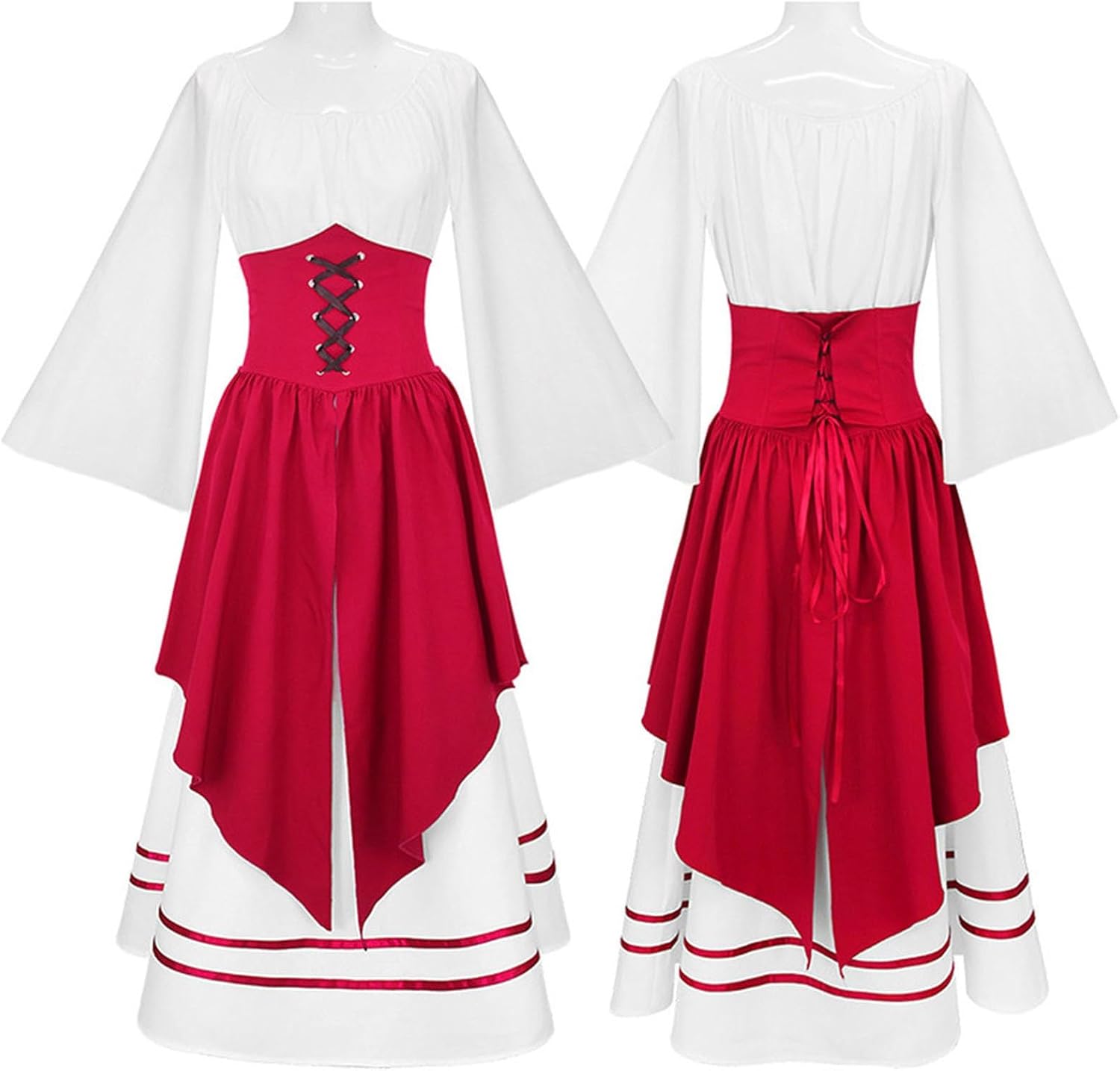 Immergiti in un mondo di magia e avventura con questo incantevole vestito fantasy. Il suo stile giocoso e naturale lo rende la base ideale per una varietà di personaggi. Il corpetto allacciato fornisce una silhouette femminile, mentre la gonna a più strati risuona ad ogni movimento. L'abito è progettato per offrire molta libertà di movimento, il che lo rende ideale per eventi attivi come eventi LARP o festival. Può essere indossato da solo o sviluppato con altri accessori come cinture, borse o un mantello in un costume completo e individuale. È un capo semplice e allo stesso tempo efficace che stuzzica la tua immaginazione e ti rende il centro della tua avventura. Colori disponibili: viola, nero, verde, rosso Contenuto della confezione: 1 vestito da donna
