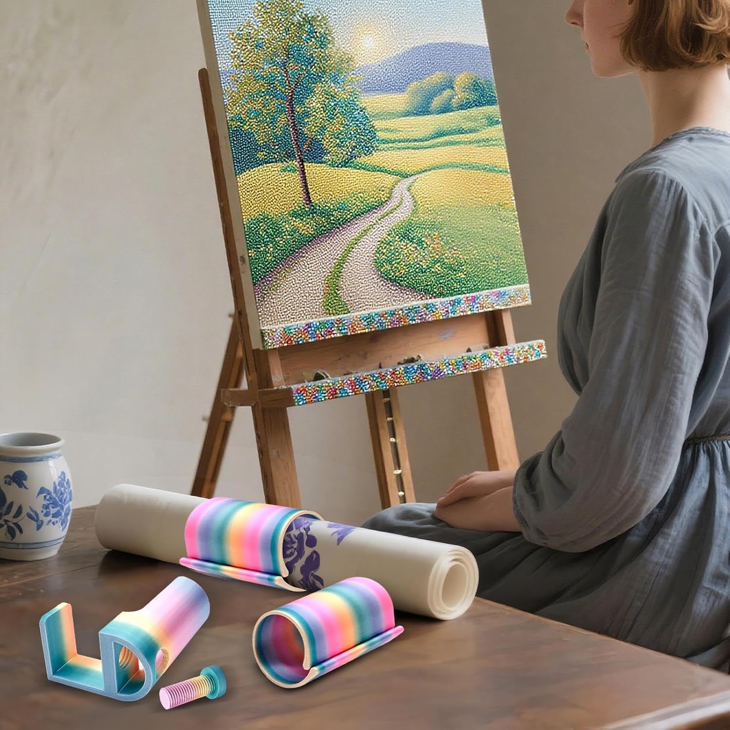Innovazione: scopri nuovi livelli di soddisfazione creativa con un set di accessori per perfezionare le tue abilità artistiche e arricchire il tuo viaggio artistico grazie a un design sofisticato Funzione di serraggio universale: progettati per adattarsi a più dimensioni, questi accessori soddisfano le esigenze creative grazie alla tela senza cuciture e regolabili per diversi stili di artigianato e livelli di abilità Perfetto per l'uso personale: con un design compatto e accurato, questo accessorio per perline supporta il tuo sviluppo creativo, è ugualmente adatto come strumento affidabile per progetti artistici personali e come regalo di ispirazione per hobbisti Accessori per la pittura senza polvere: garantire una protezione a lungo termine per i quadri diamantati arrotolando sezioni finite per prevenire interferenze da polvere e capelli e mantenere l'integrità artistica e il valore di esposizione. Risparmio di spazio: questo accessorio è ottimizzato per le configurazioni compatte e utilizza in modo efficiente lo spazio di lavoro disponibile. Crea un ambiente organizzato che aumenta il comfort e supporta flussi di lavoro artistici senza interruzioni.