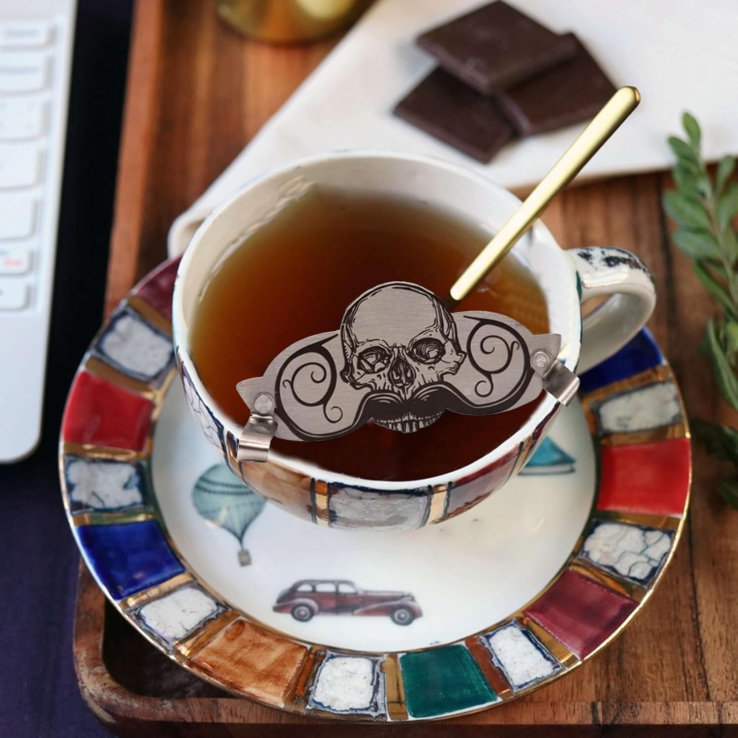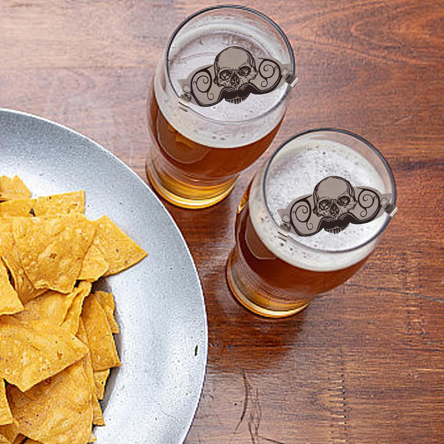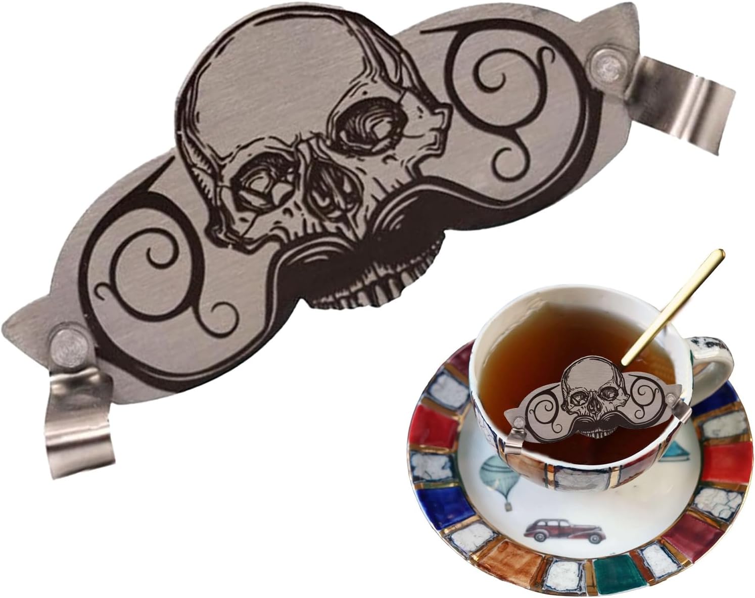 Robusta protezione per baffi: la guardia in robusto acciaio inossidabile combina strutture stabili con eccellente Protezione della barba: il design innovativo include clip a forma di teschio per proteggere la barba dall'umidità inutile durante varie bevande divertenti, che agiscono come un pratico ma elegante anello per bere Protezione per barba compatta: protezione per baffi per viaggiatori con design portatile e contenitore compatto, offre una protezione stabile da baffi asciutti in qualsiasi scenario di viaggio Facile da usare: questa protezione per baffi è progettata per una facile applicazione, poiché si attacca semplicemente al labbro superiore. Offre una soluzione user-friendly che protegge i peli del viso e ti consente di bere una bevanda pulita ogni volta Migliore comfort di bere: il design innovativo e semplice di questa protezione per baffi offre soluzioni pratiche per gli amici barbuti e rende la scelta ideale combinando stile e facilità d'uso per creare un'esperienza di bere senza soluzione di continuità e piacevole.
