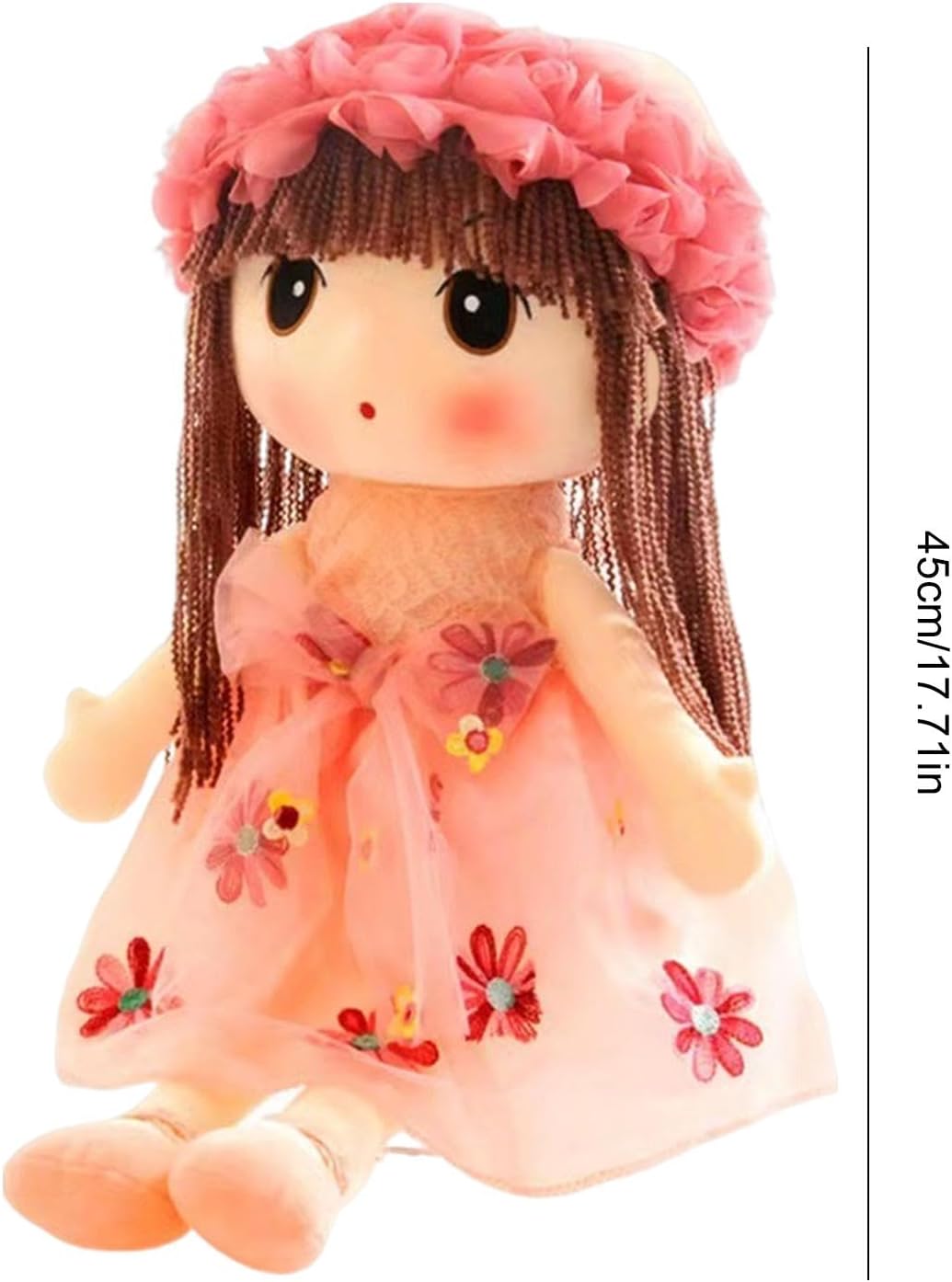 Morbida e liscia: regalati un'esperienza adorabile con la nostra bambola di peluche, realizzata in cotone PP di alta qualità per un'eccellente sensazione morbida ed elastica, mentre la proprietà elastica garantisce un compagno adorabile extra accogliente: aggiungi un tocco di dolcezza alla giornata di tuo figlio con questa bambola di peluche. Con un fiore affascinante e grandi occhi incantevoli sui capelli della sciarpa, è perfetto per giochi fantasiosi e coccole. Il regalo eccellente per ogni occasione Pratico per l'esterno: questa bambola di peluche è l'ideale per far giocare i bambini o coccolarli per addormentarli. 43 cm / 16,93 pollici, ideale per le mani dei più piccoli Varie funzioni: Forma unica, tienilo tra le braccia come un compagno a tutti gli effetti e non sdraiato, ottimo regalo di Natale, ideale per far giocare e coccolare i bambini per un pisolino tranquillo Ampia gamma di usi: Questa bambola di peluche è perfetta da coccolare ed è un ottimo compagno per bambini e adulti. Ti farà sorridere e illuminerà qualsiasi stanza della casa o del lavoro