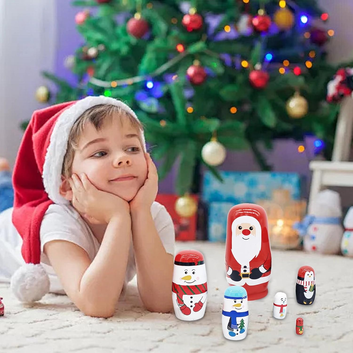 MATERIALE DI ALTA QUALITÀ: Le nostre bambole da nidificazione natalizie sono realizzate in legno di alta qualità e sapientemente realizzate a mano per evidenziare la struttura unica e l'immagine realistica di ogni bambola. La struttura solida e la qualità artigianale rendono queste bambole un'aggiunta perfetta a qualsiasi tradizione festiva Facili da riporre: queste bambole nidificanti natalizie hanno adorabili Babbo Natale e graziosi motivi di animali, e ogni bambola può essere posizionata all'interno della bambola precedente, il che è molto comodo per riporla nella scatola portaoggetti Multifunzionale: originariamente usate come astuccio, poi come scatola per riporre piccoli oggetti come gioielli, queste bambole possono anche decorare il tuo albero: non sono solo utili ma anche affascinanti Decorazioni per la casa Popolare Aumenta la gioia natalizia: Porta lo spirito festivo con le nostre Bambole nidificanti di Natale! Realizzate artigianalmente con un classico tema natalizio, queste bambole creano una forte atmosfera natalizia e aumentano la gioia delle festività natalizie. Perfetto come decorazione natalizia per la tua casa. Regalo ideale: evidenzia qualsiasi collezione di tesori fatti a mano con questo set di bambole nidificanti natalizie, un regalo perfetto per chi ama le decorazioni uniche e dal design intricato