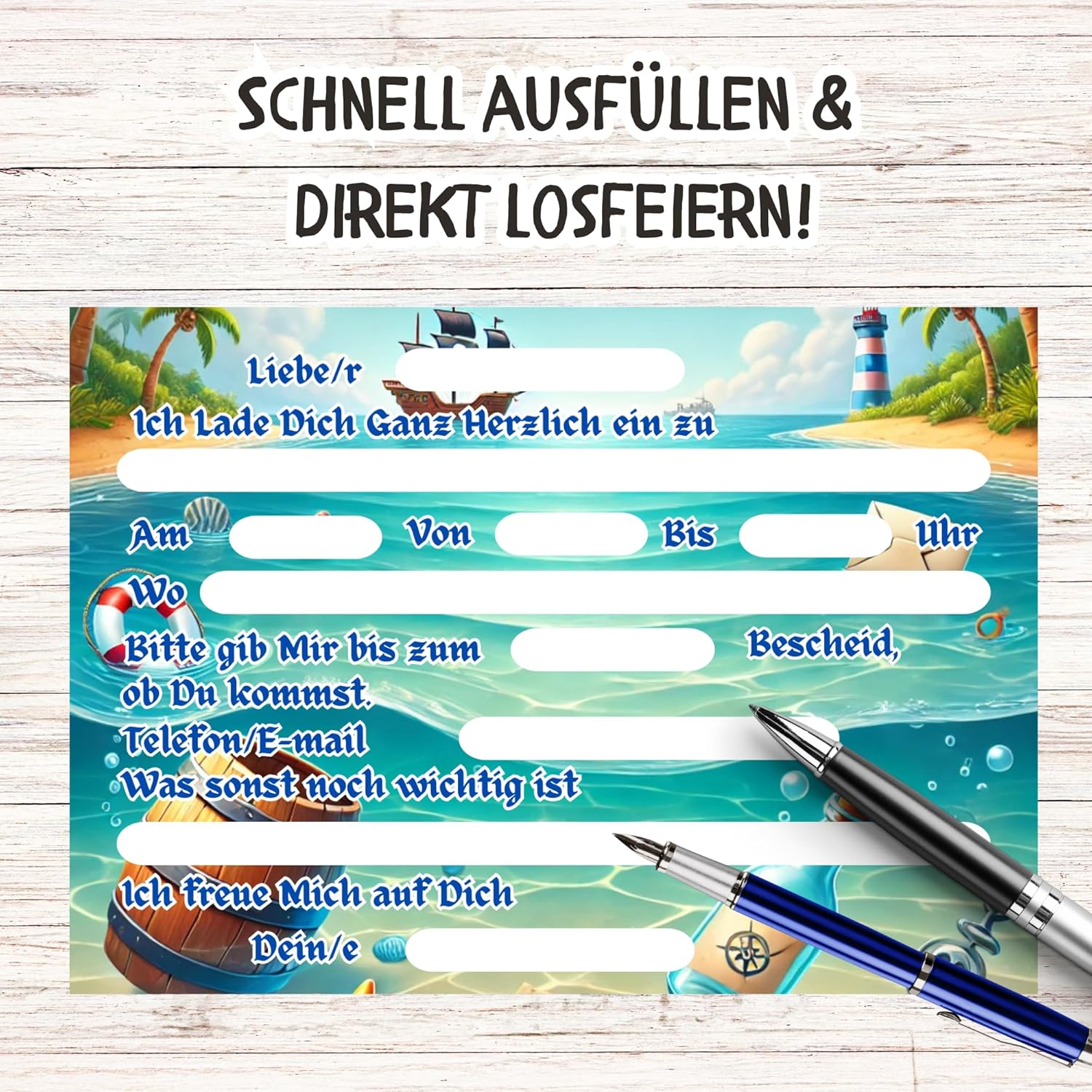 ️ Perfetto per gli appassionati di pirati, fantastici inviti per compleanni per bambini a tema pirata, entusiasma ragazzi e ragazze allo stesso modo Compilazione rapida: testo prefabbricato con campi liberi per nome, data, ora, luogo e contatto, super pratico per i genitori Con buste: ognuno dei 12 biglietti viene fornito con una busta abbinata, ideale da distribuire o spedire. Design di alta qualità: motivo pirata con colori vivaci e dettagli marittimi, vera attrazione! Qualità tedesca, stampata in Germania su carta robusta, ecologica e adatta ai bambini.