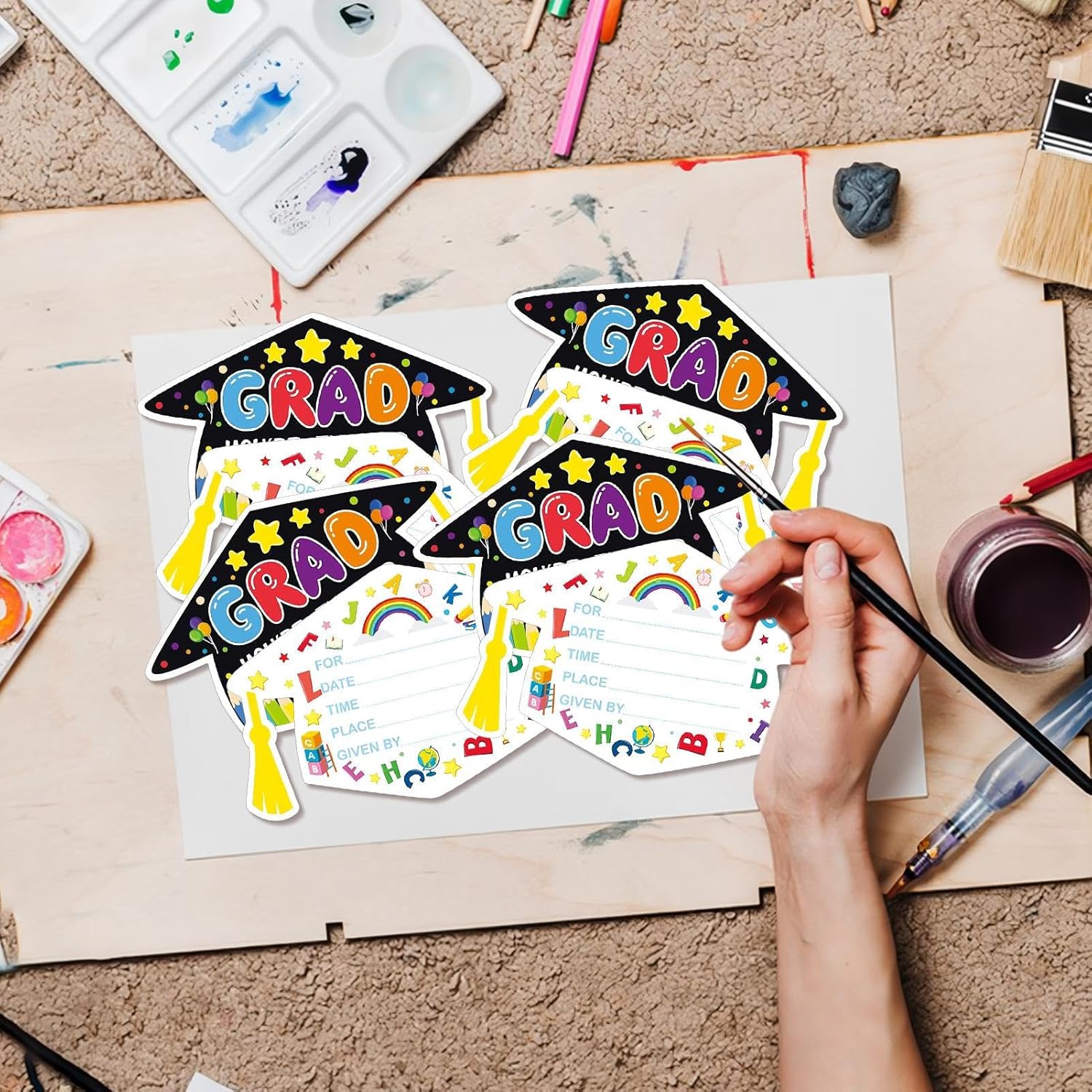 Design straordinario: presenta un modello squisito che crea un'atmosfera di festa allegra, appositamente progettata per i diplomi della scuola materna e primaria. Ideale per quelle occasioni speciali per rendere i festeggiamenti un'esperienza indimenticabile. Gli inviti sono progettati per essere funzionali ed esteticamente gradevoli. Carta di alta qualità: gli inviti sono realizzati in carta resistente e colorata con una trama sofisticata e una finitura elegante. Aggiungono un tocco accattivante alla tua festa di laurea e attirano l'attenzione con i loro colori vivaci e il design accurato. Particolarmente adatto per gli inviti di laurea 2025 per rendere elegante la tua festa e lasciare un ricordo indelebile. Confezione da 24 inviti: contiene ventiquattro biglietti dal design di alta qualità, ideali per feste di laurea ed eventi di gruppo. Questi inviti offrono una soluzione efficiente per varie occasioni e sono facili da usare. Ti consentono di gestire la tua lista degli invitati senza sforzo, lasciando un'impressione duratura. Ideale per tutti i tipi di celebrazioni del 2025. Facile da trasportare: questi inviti di laurea 2025 hanno una dimensione pratica che li rende portatili e facili da maneggiare. Possono essere rapidamente conservati e distribuiti per celebrare momenti indimenticabili. Perfetto per chi cerca una soluzione affidabile. Per varie occasioni: ideali per feste di laurea, cene di apprezzamento per gli insegnanti e riunioni di compagni di classe, questi inviti si adattano perfettamente a qualsiasi evento celebrativo o formale, rendendoli versatili per tutte le occasioni importanti
