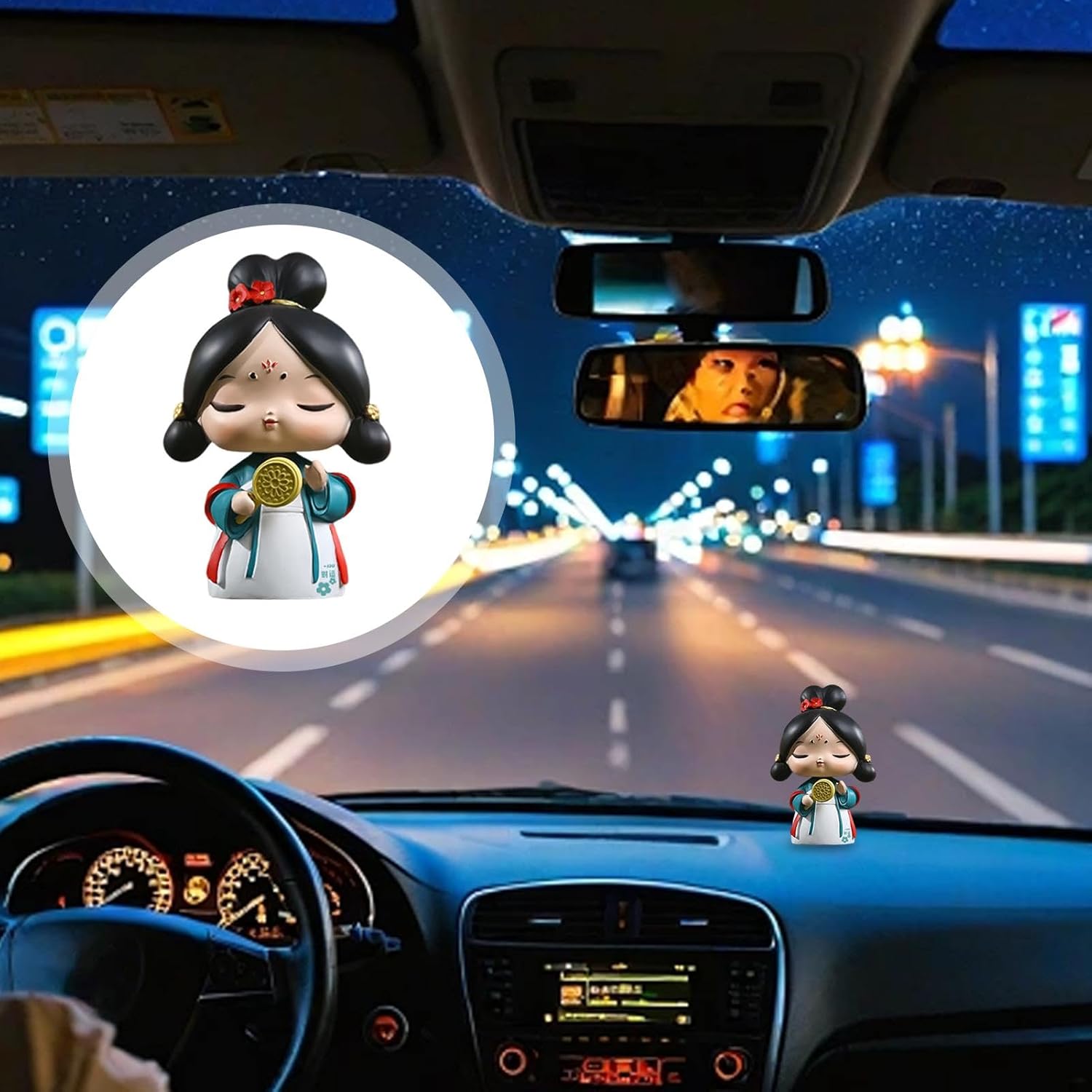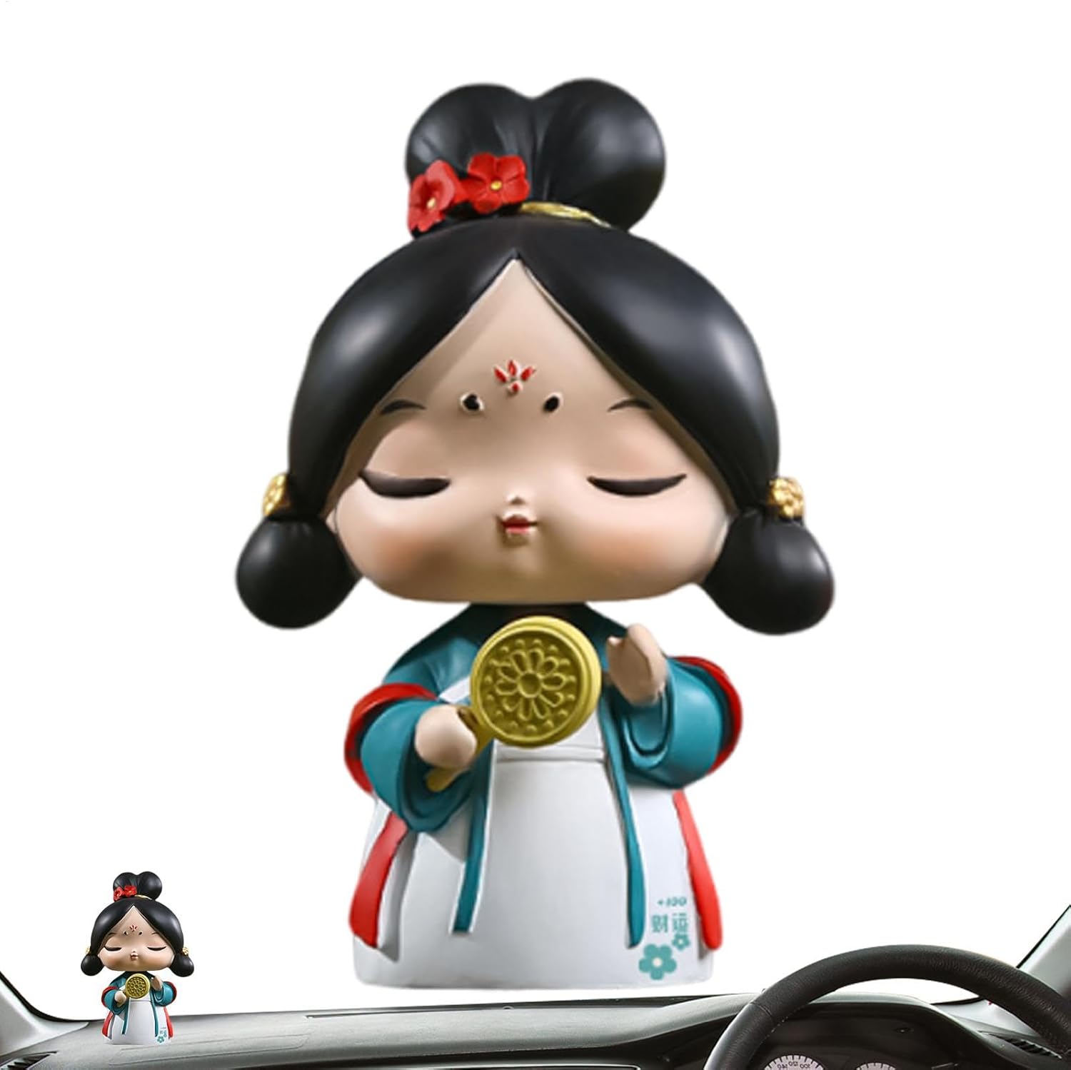 Crea un'atmosfera calda: queste figurine sono perfette per gli interni delle auto e trasmettono un senso di calma con la loro espressione gentile e il loro comportamento pacifico. Con un trucco viso intricato e sorprendente, ogni gioiello crea un ambiente rilassante e bellissimo. Lavorazione sofisticata: ogni statuetta è stata accuratamente scolpita a mano da abili artigiani e realizzata in resina resistente. Presenta linee belle e morbide che ne evidenziano l'alto valore artistico. Giocattoli divertenti: decora la tua auto con le nostre figurine. Godetevi il design giocoso della molla integrata, che permette all'ornamento di adattarsi naturalmente ai movimenti del vostro veicolo. Goditi più divertimento e interattività, aggiungi più gioia e porta una nuova attrezzatura per l'intrattenimento nel tuo viaggio. Più scelta di stile: sperimenta il fascino dei nostri bobblehead con diversi modelli, con in mano una selezione di accessori come uno specchio, un ventilatore, o con graziose maniche per soddisfare le diverse esigenze di diversi utenti. Ampia applicazione: questi bobblehead sono l'aggiunta perfetta ai piccoli spazi. Con le loro dimensioni moderate, sono adatti a qualsiasi auto, casa o studio e possono essere esposti ovunque. Fungono da decorazione unica e affascinante che non occupa troppo spazio