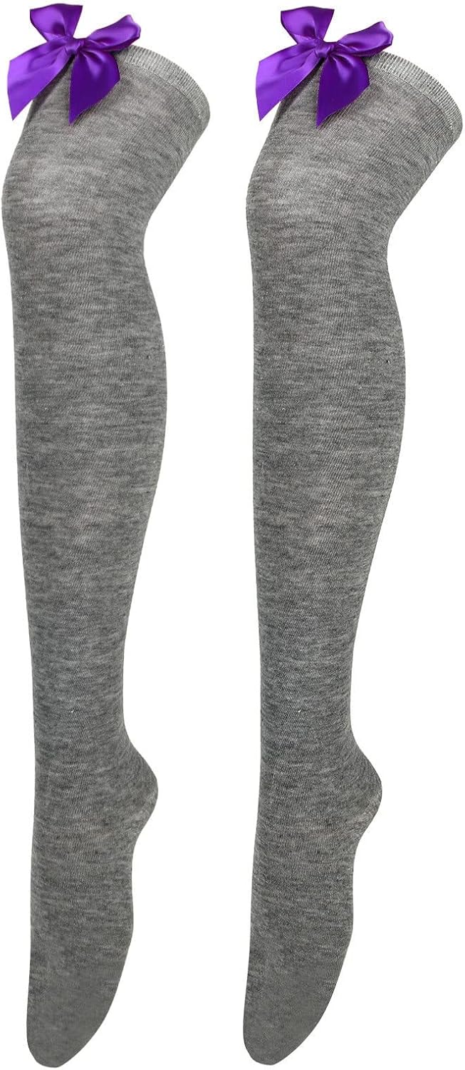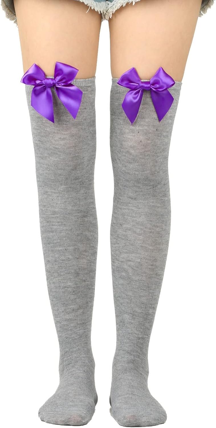 Calze lunghe da donna Bowknot di colore puro, calzini alti al ginocchio, calze da festa di Natale Contenuto della confezione: 1 paio di calze. Si prega di notare che lievi differenze di colore dovrebbero essere accettabili a causa dello schermo della luce.