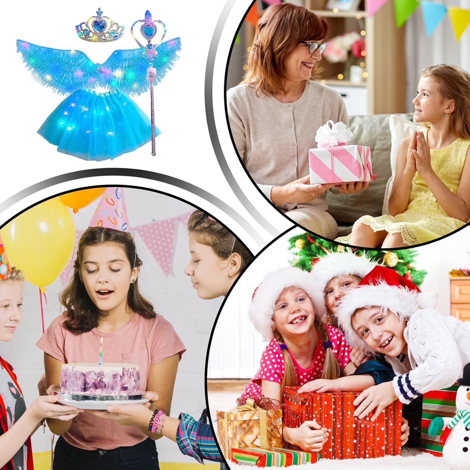 L'abbigliamento per occasioni speciali è arricchito da questo costume durante programmi scolastici, spettacoli teatrali ed eventi festivi. Un favorito per compleanni, Natale, Halloween, matrimoni e feste, arricchisce festival e cosplay, offrendo infinite possibilità fotografiche. La sua versatilità offre divertimento e coinvolgimento in vari ambienti festivi. Specifiche tecniche: Nome del prodotto: Ali d'angelo Costume Destinatari: ragazze, caratteristiche: luminoso, gioco di ruolo. Materiale: tessuto. Contenuto della confezione: 1 x alone. 1 gonna. 1 x bastone fatato. 1 x ala. Nota: 1. A causa dei diversi effetti di visualizzazione e della luce, il colore reale del prodotto potrebbe essere leggermente diverso da quello mostrato nelle immagini. Grazie! 2. Si prega di considerare 1-2 cm di differenza a causa della misurazione manuale.