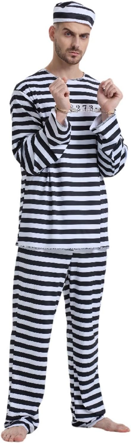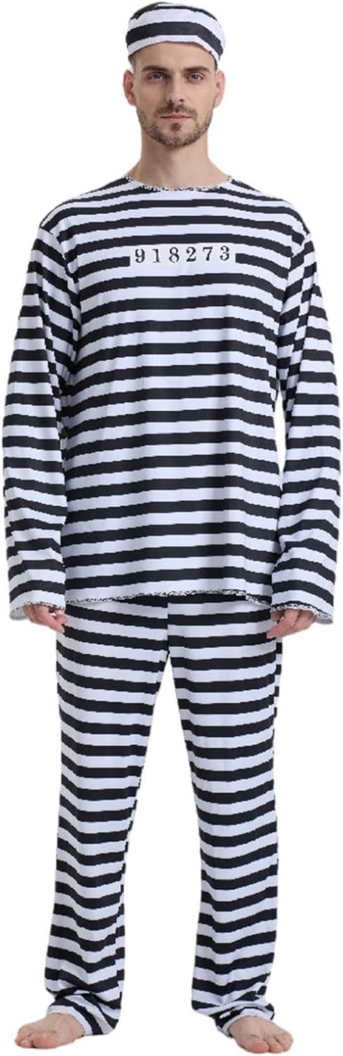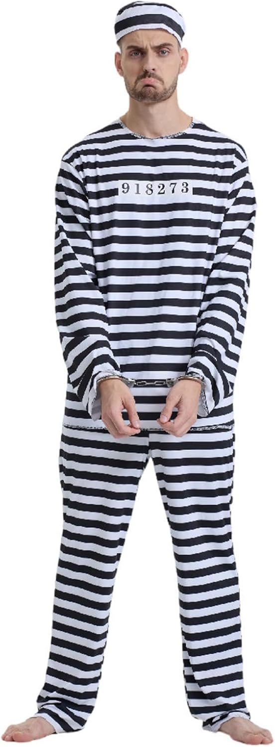 Costume di Halloween per coppie, prigioniero, cosplay, carcerario Preparati per un audace breakout o attira l'attenzione al tuo prossimo evento con il nostro costume da cosplay da prigioniero per coppie. Questo ensemble è stato progettato per il massimo impatto sul fuori palco ha il classico detenuto, che lo rende ideale per le coppie che amano esibirsi insieme.