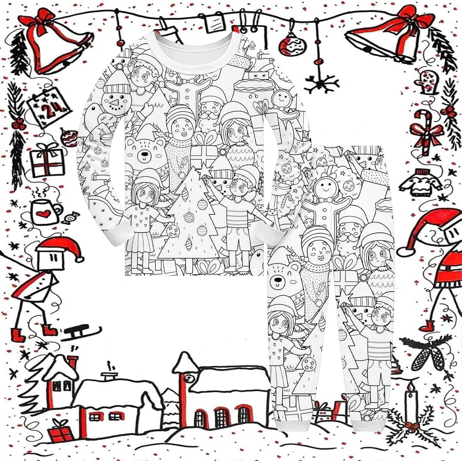 Pigiama per bambini con stampa disegnata a mano, per ragazze e ragazzi, per le vacanze e le feste in famiglia Pigiama per bambini con stampa disegnata a mano per ragazze e ragazzi, biancheria da notte abbinata per le vacanze della famiglia. Materiale: poliestere. Colore: come mostrato nell'immagine (a causa delle diverse impostazioni dei monitor, potrebbe esserci una leggera differenza di colore nella foto. Assicurati che non ti dispiaccia prima di ordinare. Grazie!) Peso della confezione: 240 g. Dimensioni della confezione: 20 x 10 x 1 cm (le dimensioni sono misurate manualmente e potrebbero variare di 1-3 mm. Si prega di assicurarsi che non vi dispiaccia prima di ordinare