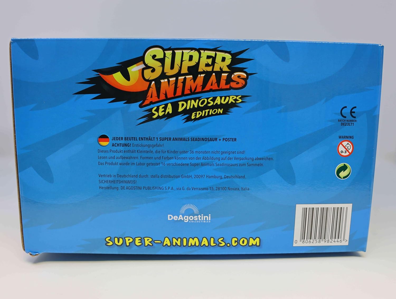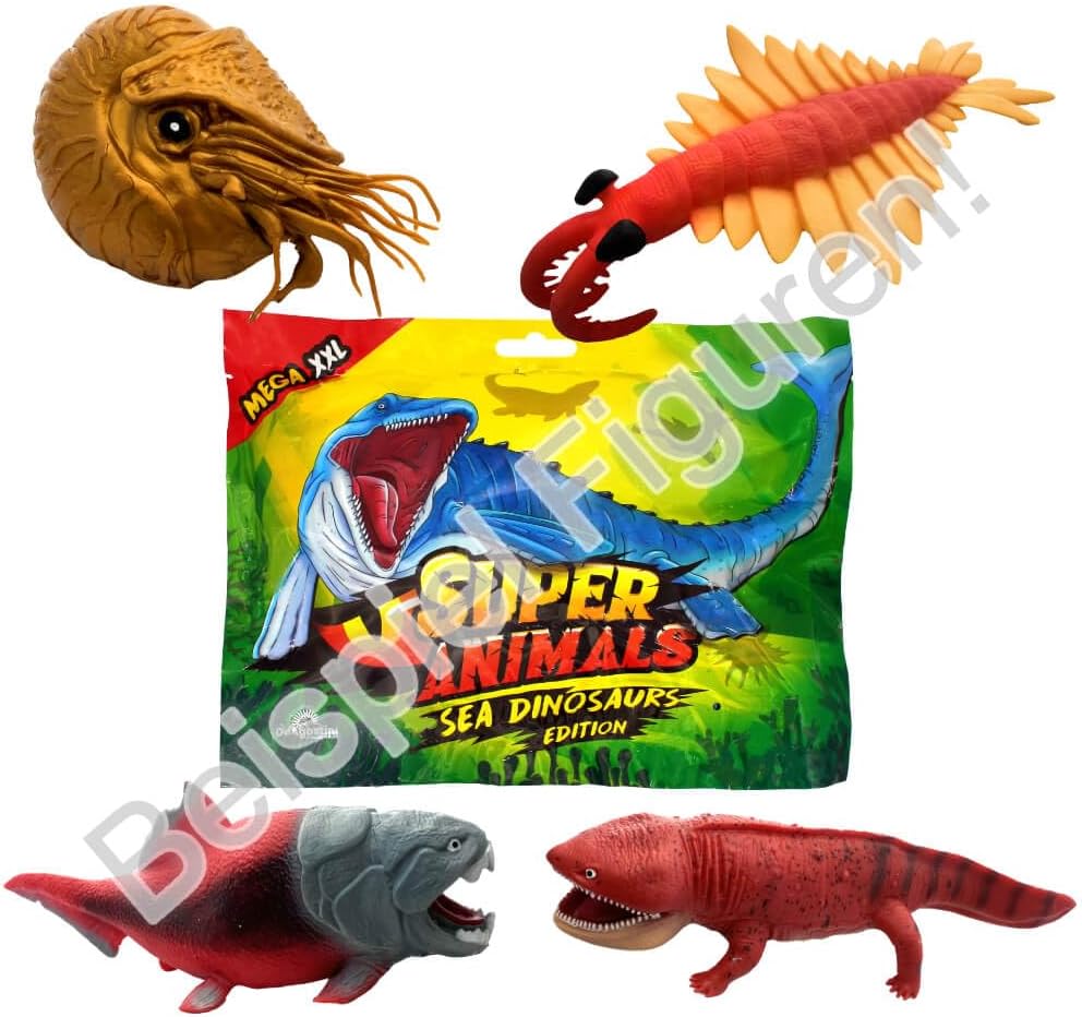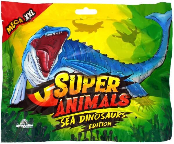 DeAgostini Super Animals Figure - Sea Dinosaurs Edition - Figura da collezione Sea Dino Consegna: 3 buste Scopri la prossima generazione di personaggi da collezione con la nuova DeAgostini Super Amimals Sea Dinosaurs Edition. Dei nuovi personaggi della Dinos Edition, molti sono dotati di caratteristiche come il cambio di colore, il bagliore al buio, super elastico, un raro dinosauro marino "dorato". In questa serie di personaggi da collezione ci sono un totale di 14 Sea Dinos da collezionare, due dei quali sono Sea Dinos che cambiano colore, uno è dorato, uno è trasparente e uno si illumina al buio. Un espositore contiene 14 buste. La serie completa contiene 14 figure. Ogni busta contiene un personaggio da collezione e una scheda informativa sul rispettivo Sea Dino.