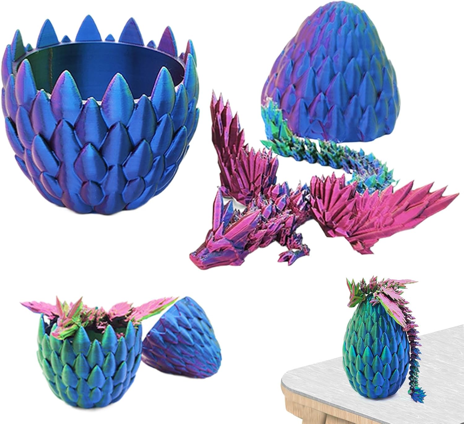 Decorazione per la casa: scopri il mistico con questo uovo di drago stampato in 3D. Interagisci con l"uovo e senti l"energia che prende vita e ti fa sentire come se stessi dando vita alla creatura. L'ornamento perfetto per gli amanti dei draghi Design inconfondibile: valorizza il tuo arredamento con lo splendido uovo di drago stampato in 3D. Il suo design elaborato e l'attenzione ai dettagli lo rendono una squisita aggiunta a qualsiasi arredamento o decorazione da tavolo Stimola l'immaginazione: grazie alla possibilità di articolazioni mobili, questo uovo di drago stampato in 3D stimola l'immaginazione, la creatività e la destrezza del tuo bambino ed è un giocattolo innovativo che amplia i confini del gioco Giunti più flessibili: le articolazioni di questo gelato di drago stampato 3D possono essere oscillate in diverse scene emozionanti, migliorando la giocabilità e aggiungendo immaginazione illimitata al tuo tempo di gioco Dettagli squisiti: Immergiti in un incredibile mondo fantastico con l'uovo di drago stampato in 3D. La sua consistenza liscia e l'aspetto lucido catturano perfettamente l'essenza della creatura mitica senza che angoli e bordi possano influenzare il tuo divertimento