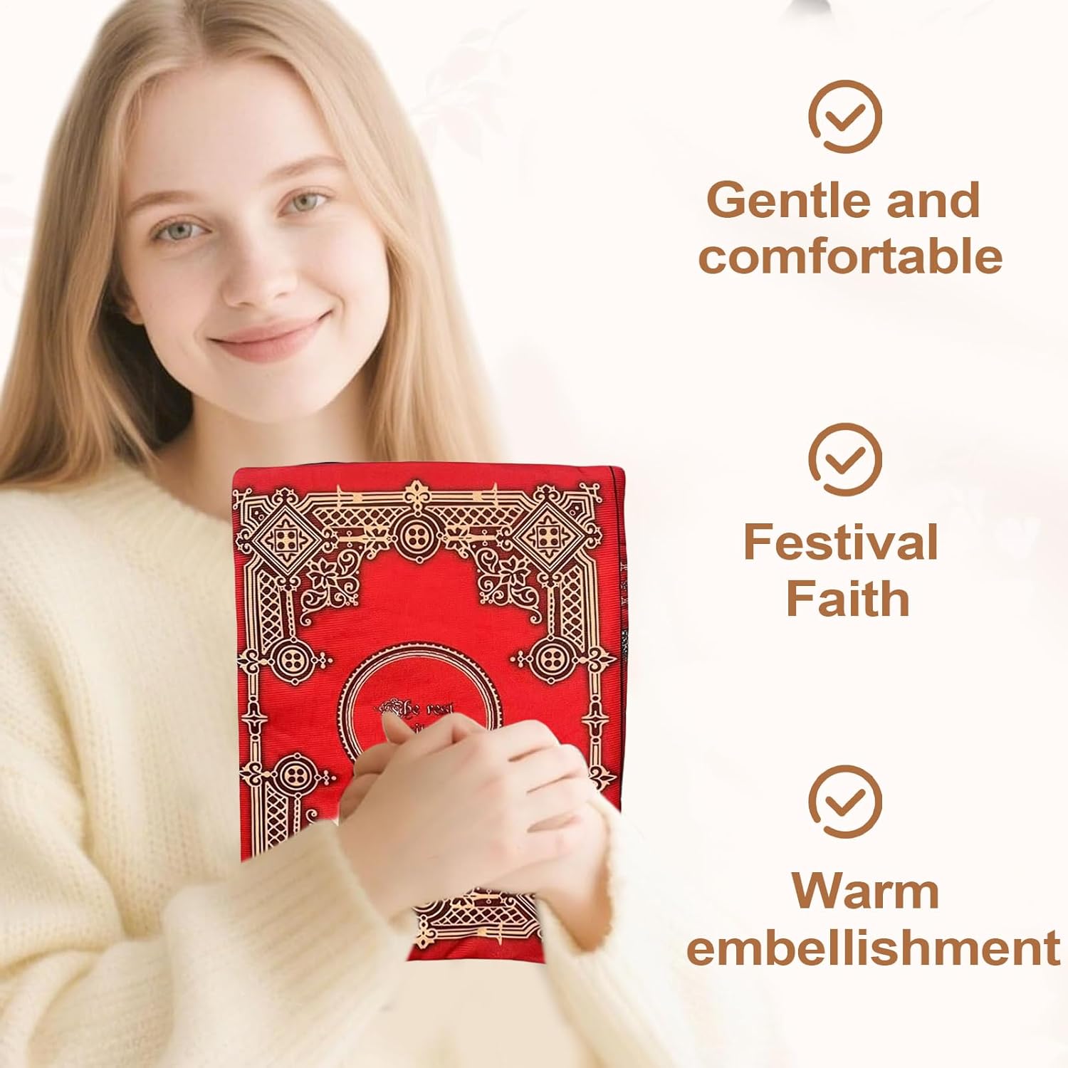 Cattura l'attenzione festosa: come decorazione pasquale creativa, questo cuscino per libri crea un'atmosfera invitante dal carattere spirituale e sottolinea l'atmosfera festosa durante le riunioni di famiglia. Decorazione della parte inferiore: aumenta l'atmosfera della stanza attraverso una presentazione premurosa e verticale. Si integra perfettamente nell'estetica della stanza e promuove momenti di contemplazione interiore e meditazione per un effetto calmante. Regalo festivo: ideale come regalo emozionante per i propri cari in occasioni speciali come Natale, anniversari o compleanni. Questo cuscino biblico trasmette affetto in modo naturale e rafforza le relazioni attraverso la sua idea regalo unica. Usi flessibili: si adatta perfettamente a librerie, scrivanie, soggiorni, camere da letto, camerette o scaffali. Fornisce un adattamento naturale a diverse strutture con presenza funzionale. Sensazione di benessere ottimale: la combinazione di lavorazione di alta qualità e morbido materiale peluche garantisce una sensazione traspirante ed elastica che resiste alla deformazione e offre un comfort duraturo.