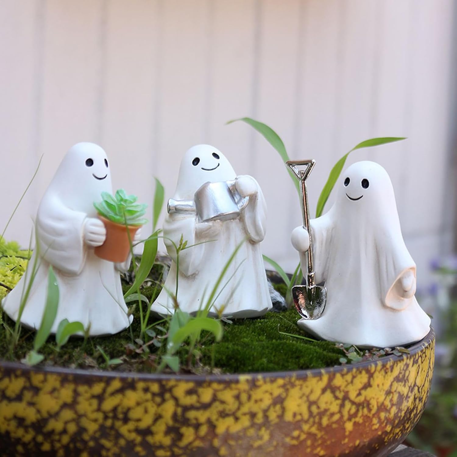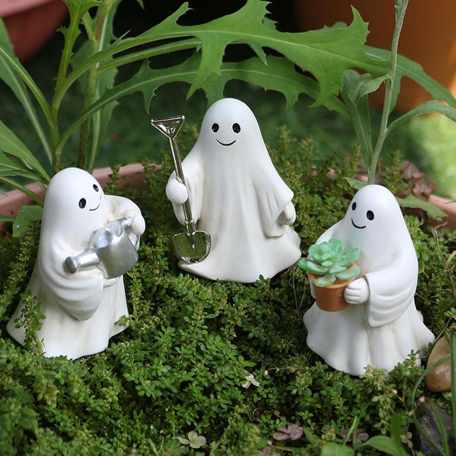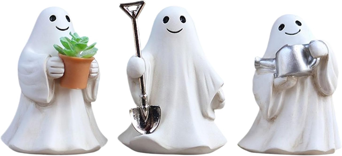 FACILE MANUTENZIONE La superficie liscia opaca di questi personaggi fantasmi in resina realizzata in materiale facile da pulire consente una rapida pulizia con un solo panno umido per un'estetica duratura Regalo versatile: questa statuetta fantasma aggiunge un tocco giocoso alla tua casa ed è perfetta come regalo premuroso per feste, occasioni festive o accessori per la casa spontanei. Un'idea regalo ideale per Halloween ed eventi a tema Versatile decorazione fantasma: piccole figure fantasma offrono accessori per la casa flessibili che sembrano accattivanti su comò e in eleganti composizioni da tavolo Inquietanti accessori per la casa: aumenta il tuo umore festivo con tre personaggi fantasmi di Halloween che aggiungono simpatica spaventosità al tuo giardino o casa e completano efficacemente i temi decorativi stagionali Elementi essenziali per la decorazione di Halloween: decora la tua stanza con elementi decorativi gotici e accessori per eventi a tema, perfetti per feste di Halloween, presentazioni stagionali di figurine e regali indimenticabili per un'eleganza misteriosa.
